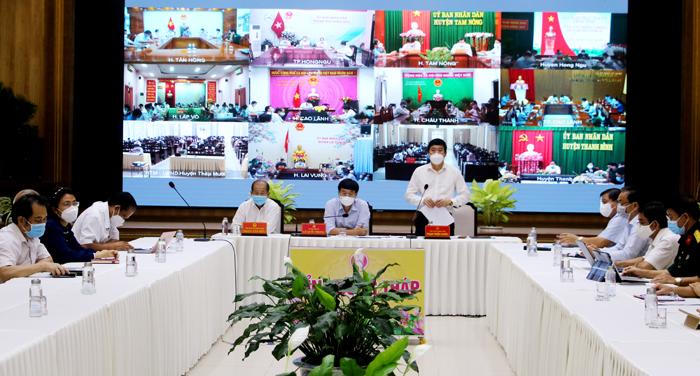 Buổi làm việc của Ban Chỉ đạo phòng, chống dịch COVID-19 tỉnh Đồng Tháp với cấp uỷ, Ban chỉ đạo phòng, chống dịch bệnh COVID-19 các huyện, thành phố. Ảnh: dongthap.gov.vn |