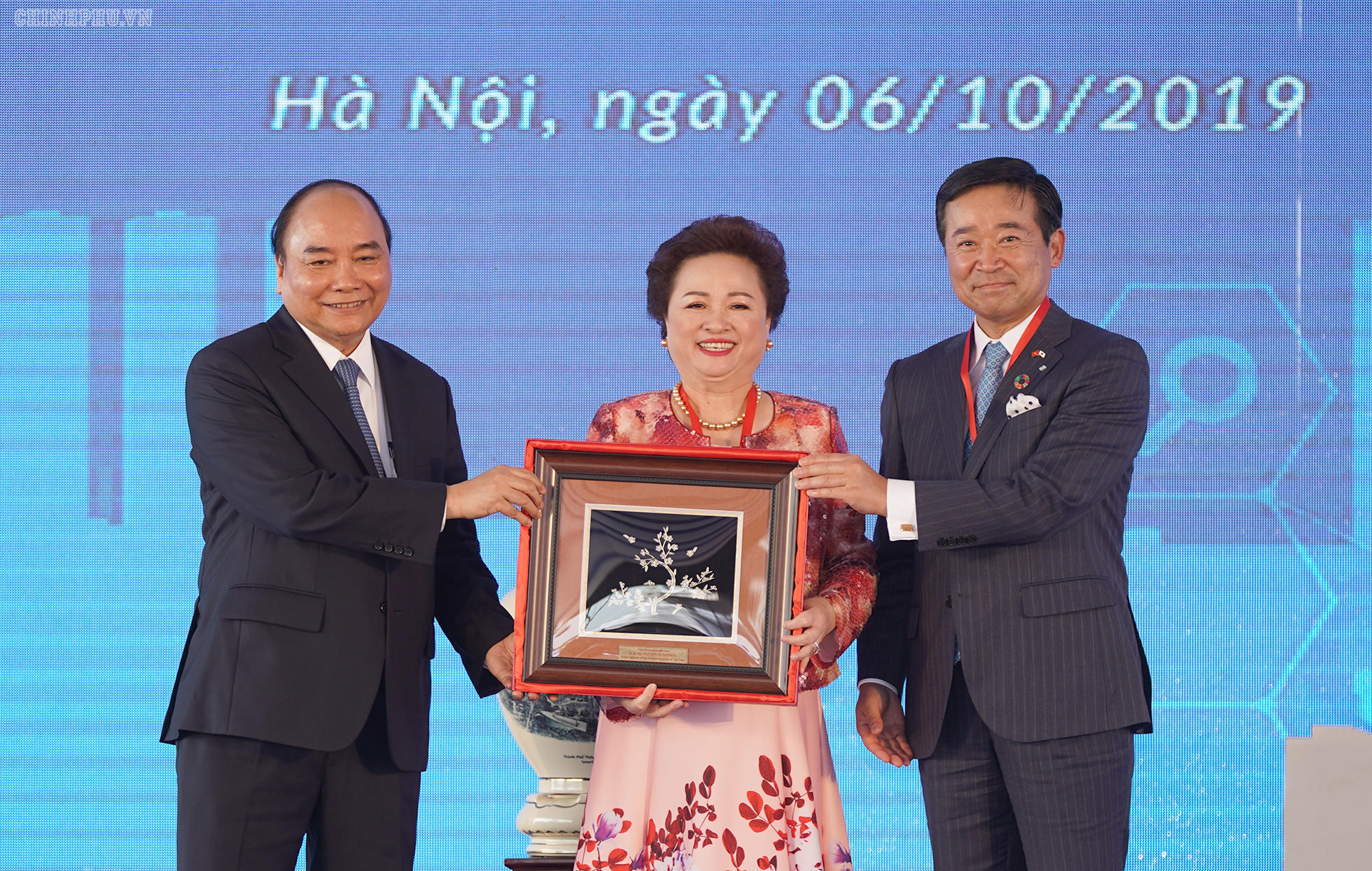 | Thủ tướng Nguyễn Xuân Phúc trao quà lưu niệm cho nhà đầu tư. Ảnh: VGP/Quang Hiếu |
