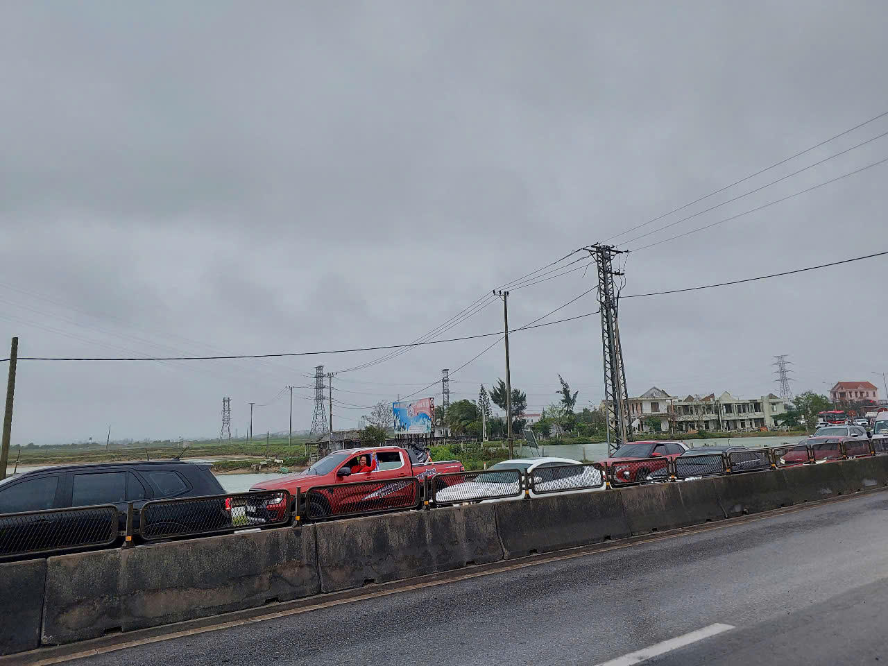 Dòng xe di chuyển rất chậm qua cầu Gianh chiều 3/2. |