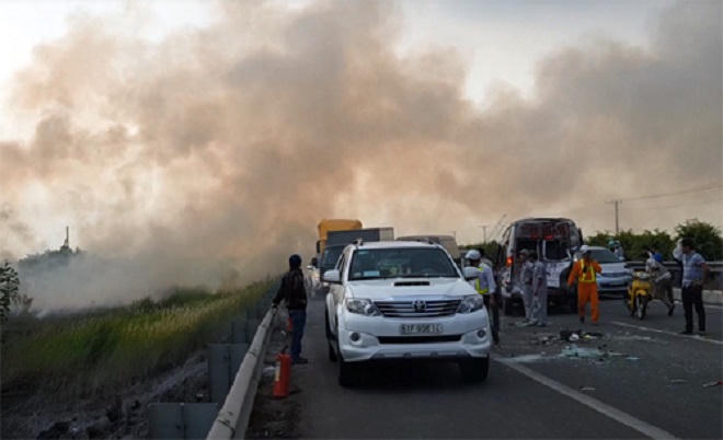 Khoảng 14h30 ngày 3/4, tại cao tốc TP HCM – Long Thành – Dầu Giây, đoạn cách cầu vượt Quốc lộ 51 khoảng 2km xuất hiện lượng khói dày đặc từ hai bên đường tràn vào bất ngờ khiến các xe đang lưu thông trên cung đường này không thể quan sát được. Càng về sau, đám khói mỗi lúc một lan rộng và dày đặc hơn, đến khoảng 15h thì ở cả hai làn đường, nhiều tài xế không thể quan sát được xe phía trước nên đã húc đuôi nhau, gây ra tai nạn liên hoàn.