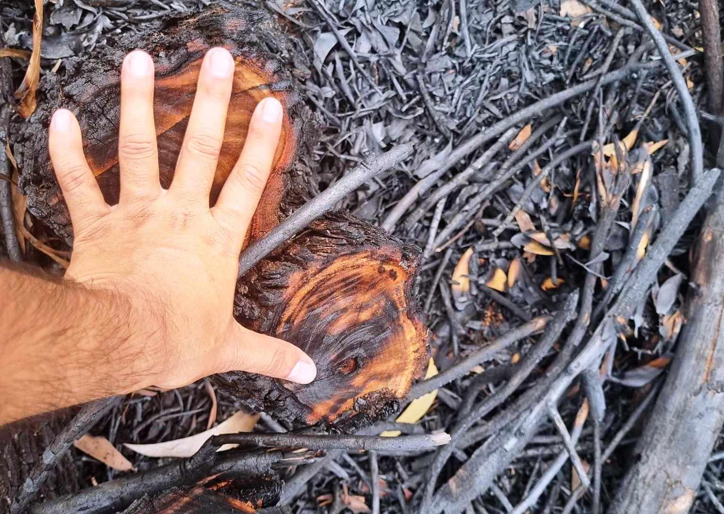 Nhiều cây trong khu vực diễn tập cháy đen. |