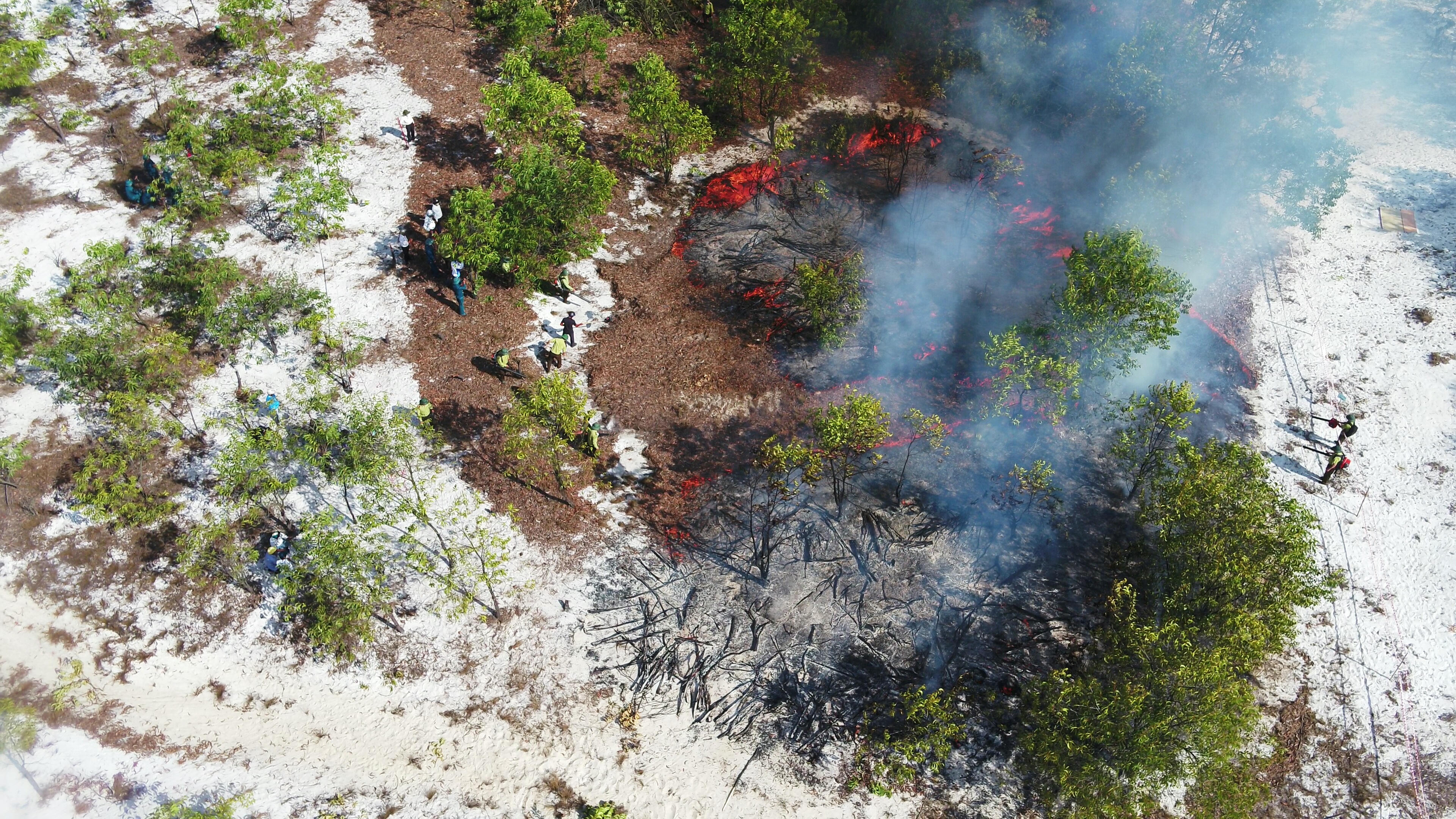 Theo ông Út, khu vực diễn tập chữa cháy rừng này rộng khoảng mấy trăm m2 với hiện trạng là cây rừng thưa thớt, “không ảnh hưởng lớn đến cây rừng”. Những cây bị cưa hạ làm thực bì là những cây rừng đã bị chết. Bởi vì, phải gom thực bì khô để tạo ra lửa nhân tạo phục vụ cho công tác diễn tập. Đây cũng là hoạt động vệ sinh rừng để hạn chế mối nguy cháy rừng.