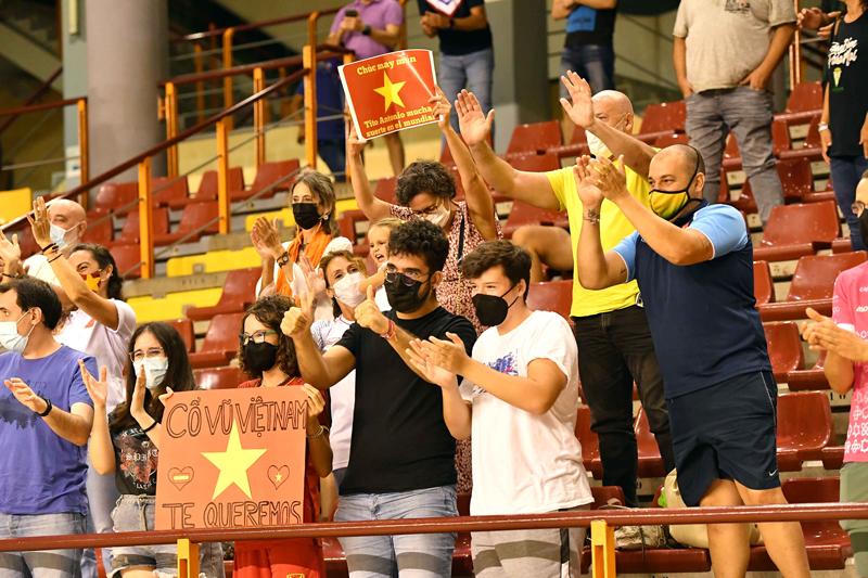 Khán giả Tây Ban Nha cổ vũ ĐT futsal Việt Nam trên khán đài. |