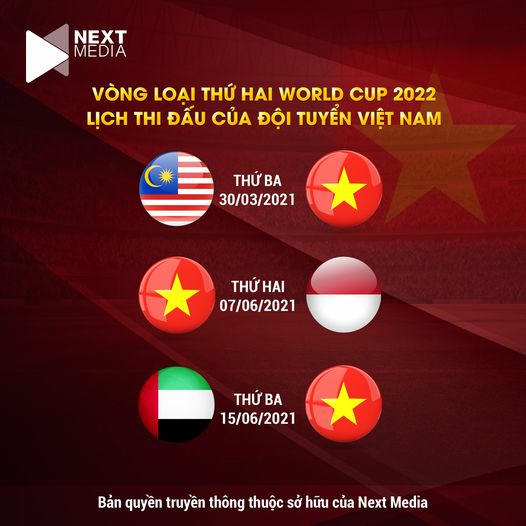 Theo lịch thi đấu, đội tuyển Việt Nam sẽ làm khách trên sân Malaysia vào thứ 3 ngày 30/3/2021), gặp Indonesia trên sân vận động Mỹ Đình vào thứ 2 ngày 7/6/2021 và gặp UAE trên sân khách vào thứ 3, ngày 15/6/2021.