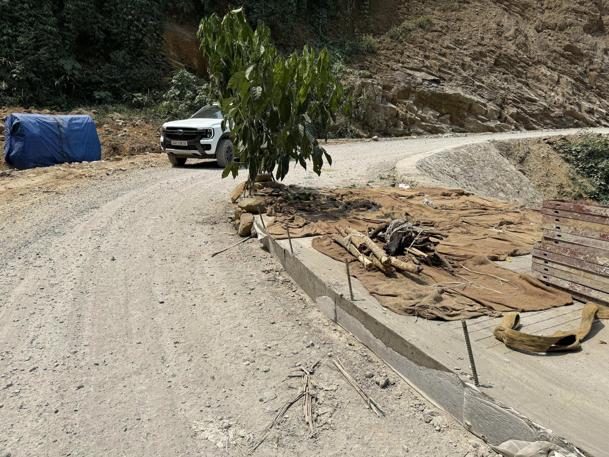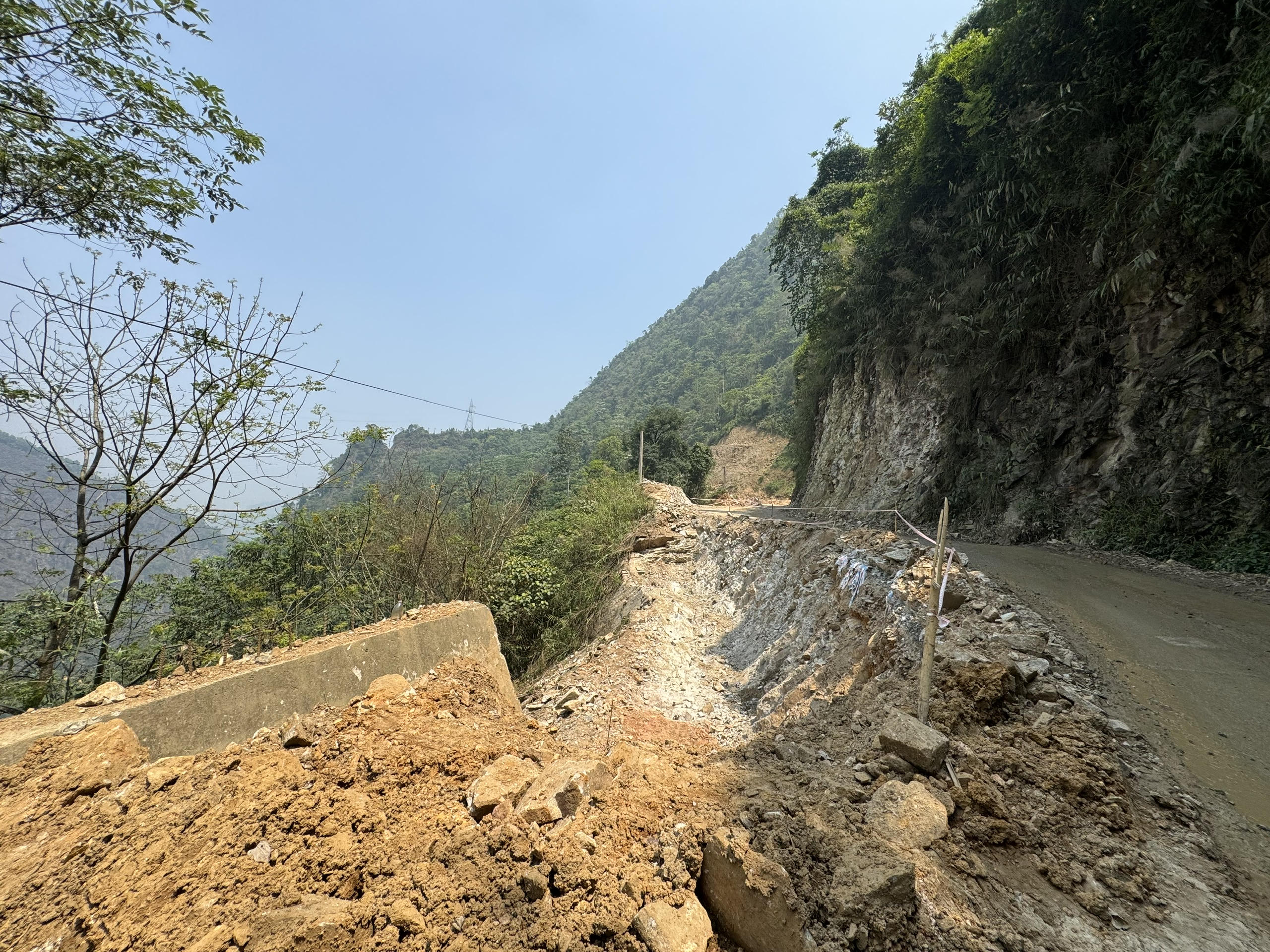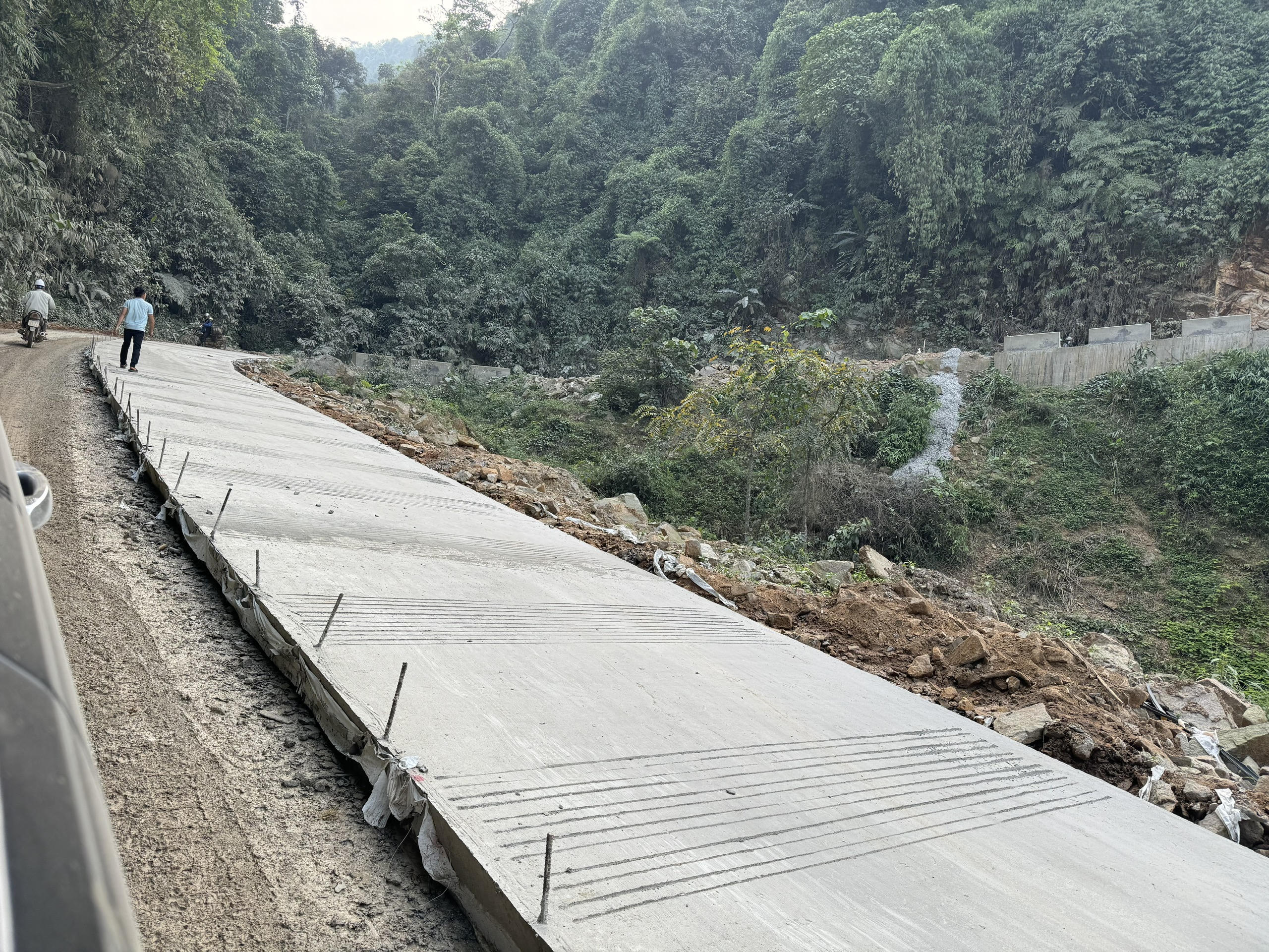 Ghi nhận thực tế của phóng viên Báo Pháp luật Việt Nam, đúng như phản ánh của người dân, đây là cung đường khá nguy hiểm, một bên là vách núi, một bên là vực sâu, đường khá hẹp, nhưng không hề có cảnh báo công trình đang thi công, cần lưu ý để an toàn cho người dân.