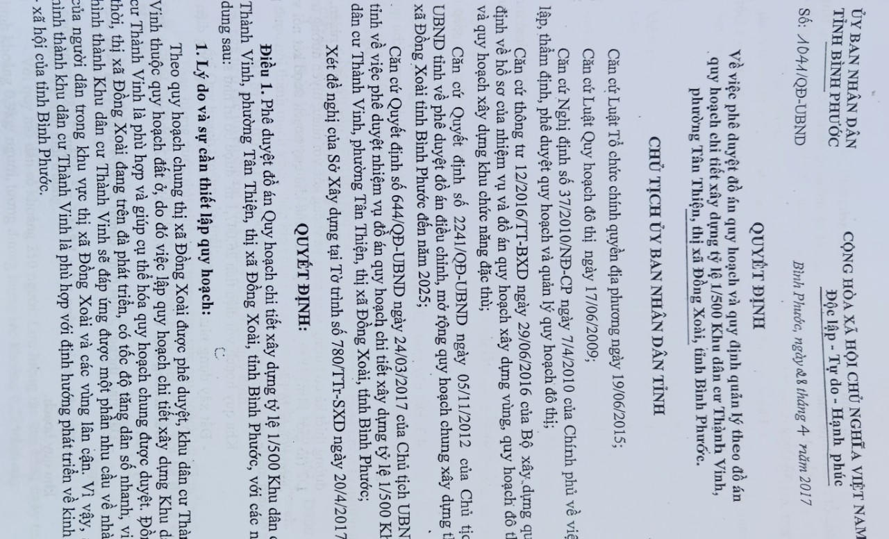 Quyết định phê duyệt đồ án quy hoạch chi tiết xây dựng tỷ lệ 1/500 với dự án. (Ảnh: Trường Giang) |