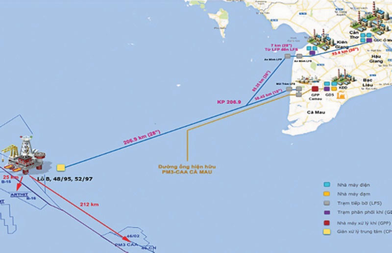 PV GAS và đối tác sẽ xây dựng hệ thống đường ống dẫn khí dài khoảng 431 km nối Lô B với Trung tâm Điện lực Ô Môn. |