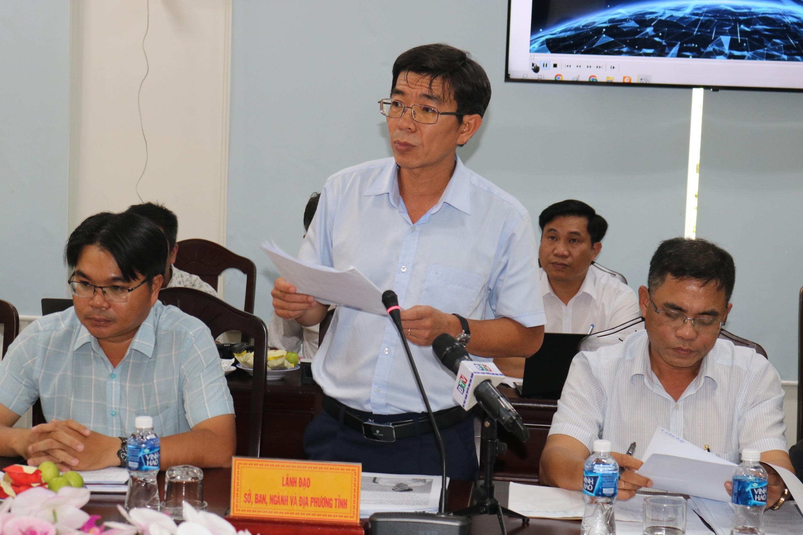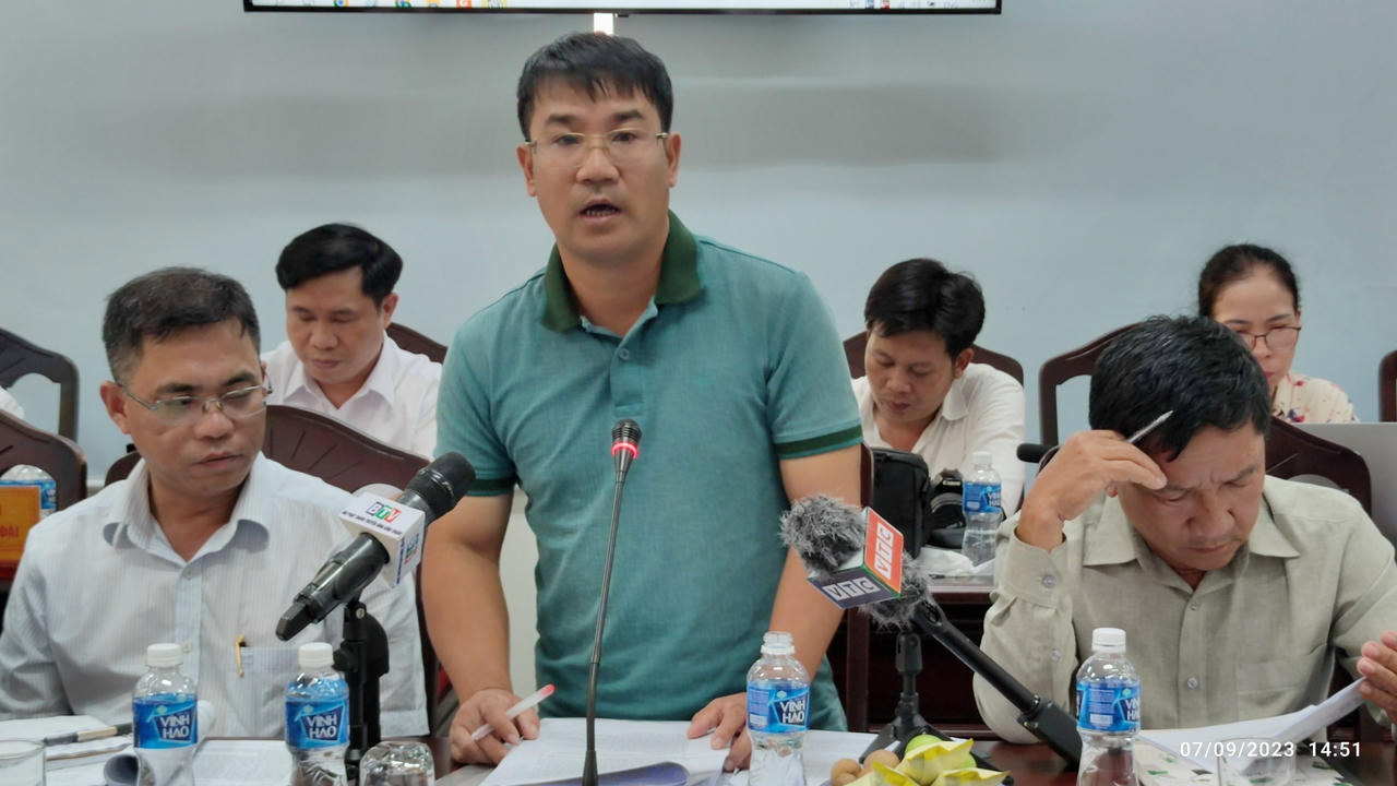 Đại diện Ban Quản lý dự án Đầu tư xây dựng các công trình Nông nghiệp và Phát triển nông thôn tỉnh Bình Thuận báo cáo tại buổi họp báo. |