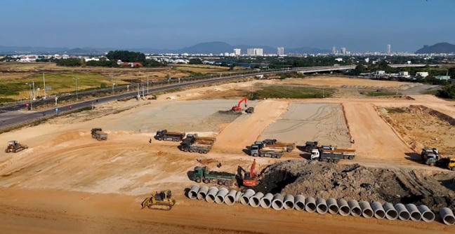 Các đơn vị cũng đang gấp rút hoàn thành hệ thống hạ tầng kỹ thuật, thi công lớp cấp phối đá dăm một số tuyến đường; đồng thời triển khai đóng cọc, móng tường chắn, trồng cây xanh,…