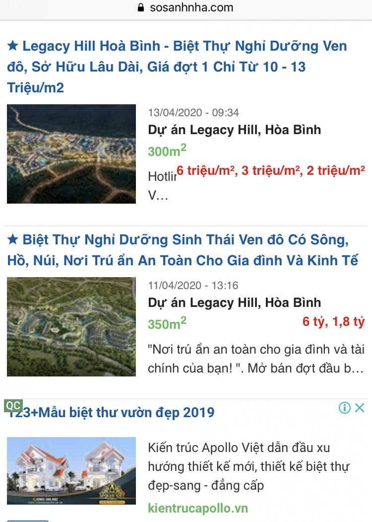 Các thông tin rao bán dự án Legacy Hill Hòa Bình