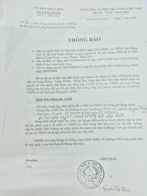 Một thời gian sau, quyết định đó được thông qua tại cuộc họp HĐND huyện Long Thành. “Nói chung, họ làm mang tính chất hợp thức hóa”, ông Nhuần tố cáo.