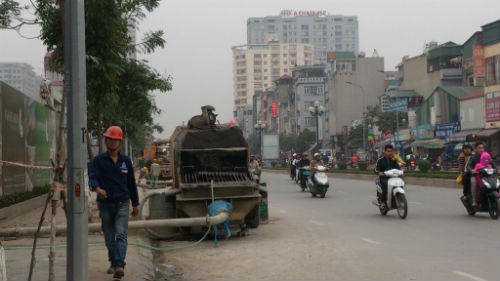 Theo ghi nhận của phóng viên, mỗi ngày có khoảng vài chục lượt xe chở bê tông thường xuyên đỗ dưới lòng đường, chiếm dụng vỉa hè phố Tân Mai thành công trường xây dựng. Không dừng lại ở việc chiếm dụng lòng đường, vỉa hè của người tham gia giao thông, dự án này còn có dấu hiệu “tiếp tay” cho “giặc” quá tải tàn phá hạ tầng giao thông, uy hiếp người dân!?