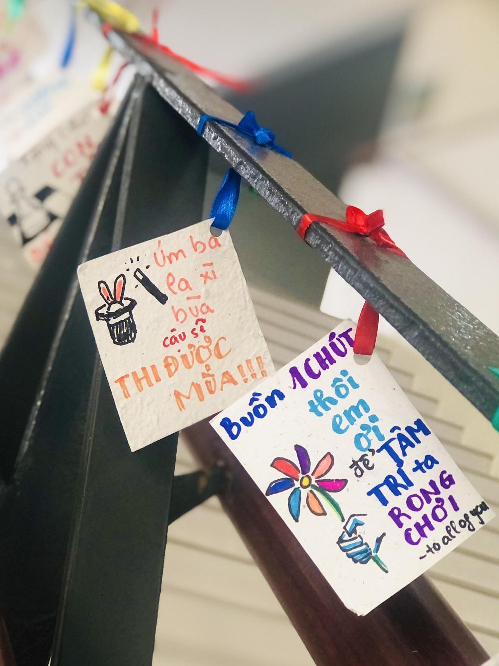 Hàng trăm chiếc “note” nhỏ xinh được treo khắp khuôn viên trường Đinh Thiện Lý |
