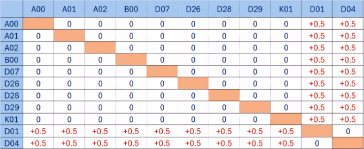Độ lệch điểm giữa các tổ hợp xét tuyển vào khối nhóm ngành kỹ thuật (A00, A01, A02, B00, D07, D26, D28, D29 và K01) và các tổ hợp sử dụng để xét tuyển vào khối nhóm ngành kinh tế, giáo dục, ngoại ngữ (D01 và D04) là +0.5 điểm vào mức điểm chuẩn khi xét cùng vào một chương trình đào tạo đối với các tổ hợp A00, A01, A02, B00, D07, D26, D28, D29 và K01.