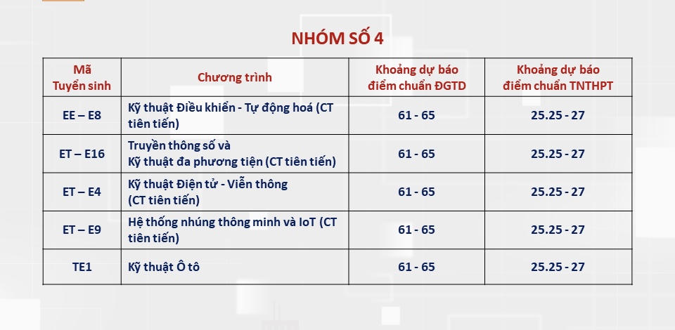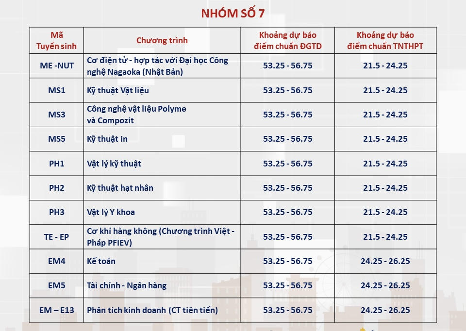 Nhà trường lưu ý, điểm chuẩn dự báo chỉ mang tính chất tham khảo và hỗ trợ thí sinh trong quá trình đăng ký nguyện vọng xét tuyển vào Đại học Bách khoa Hà Nội.