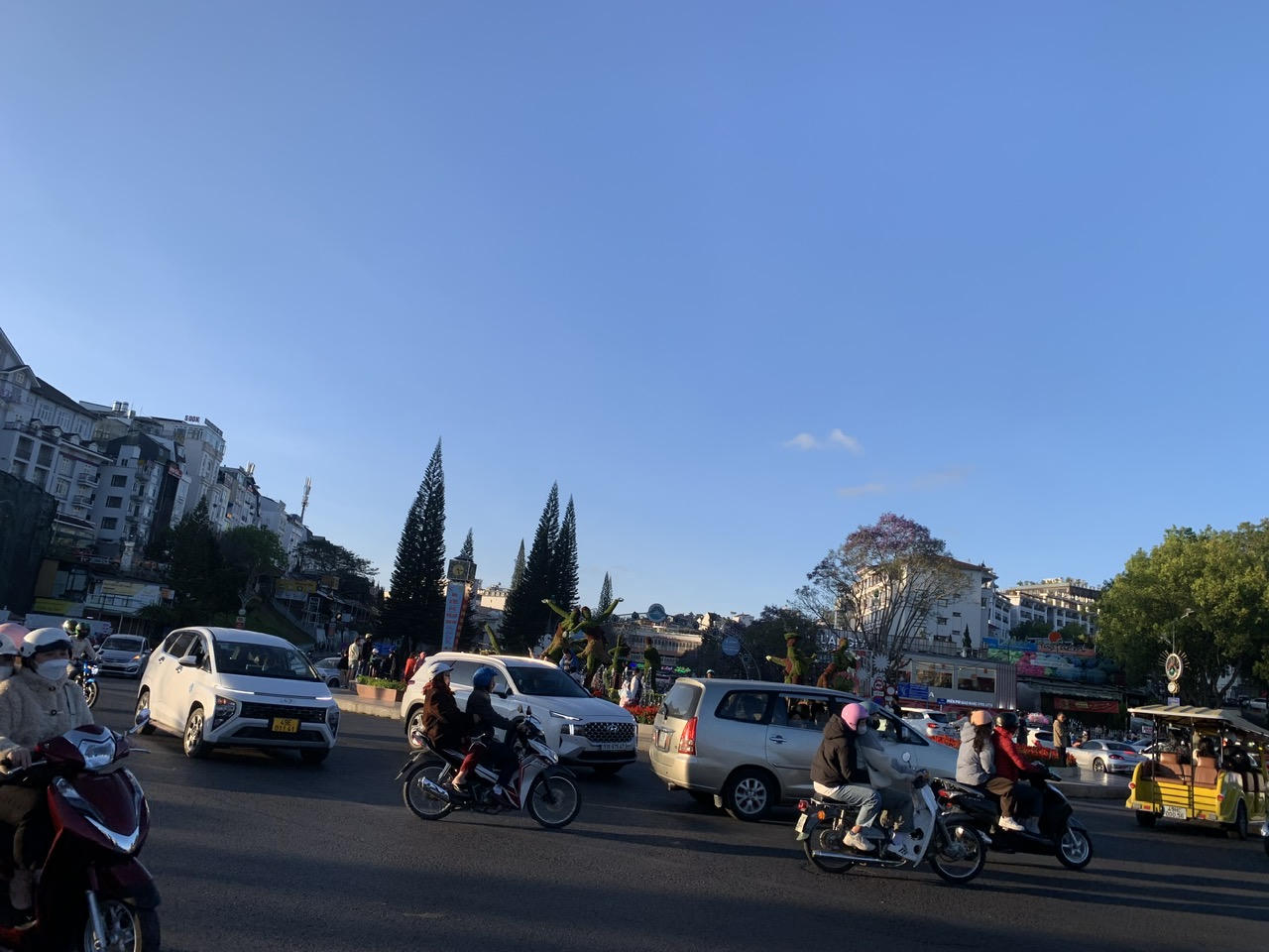 Đường phố Đà Lạt đông lên hẳn so với ngày mùng 1 Tết. |