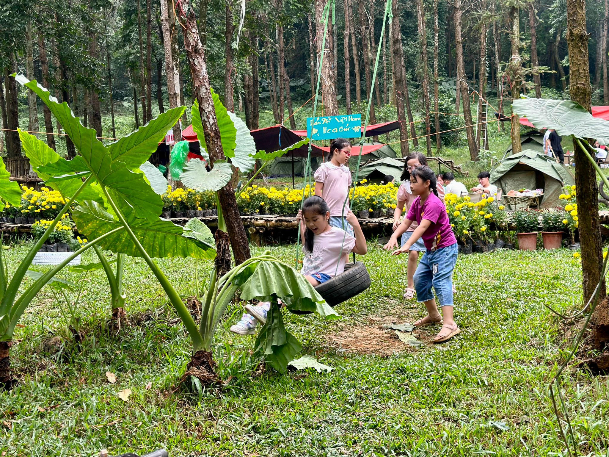 Ngày 19/11, rất đông người dân và khách du lịch đã đến Khu du lịch Thiên Sơn Suối Ngà (Ba Vì, Hà Nội) để cắm trại, tham quan sự kiện trưng bày hoa cúc năm 2022 với chủ đề “Hoa cúc Medi - Mùa tri ân”.