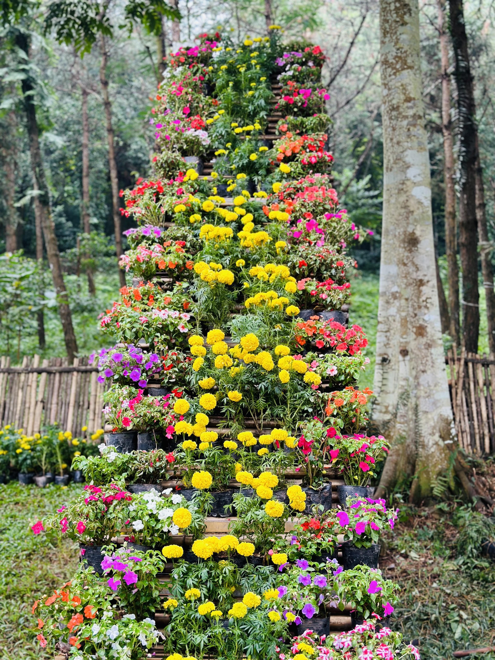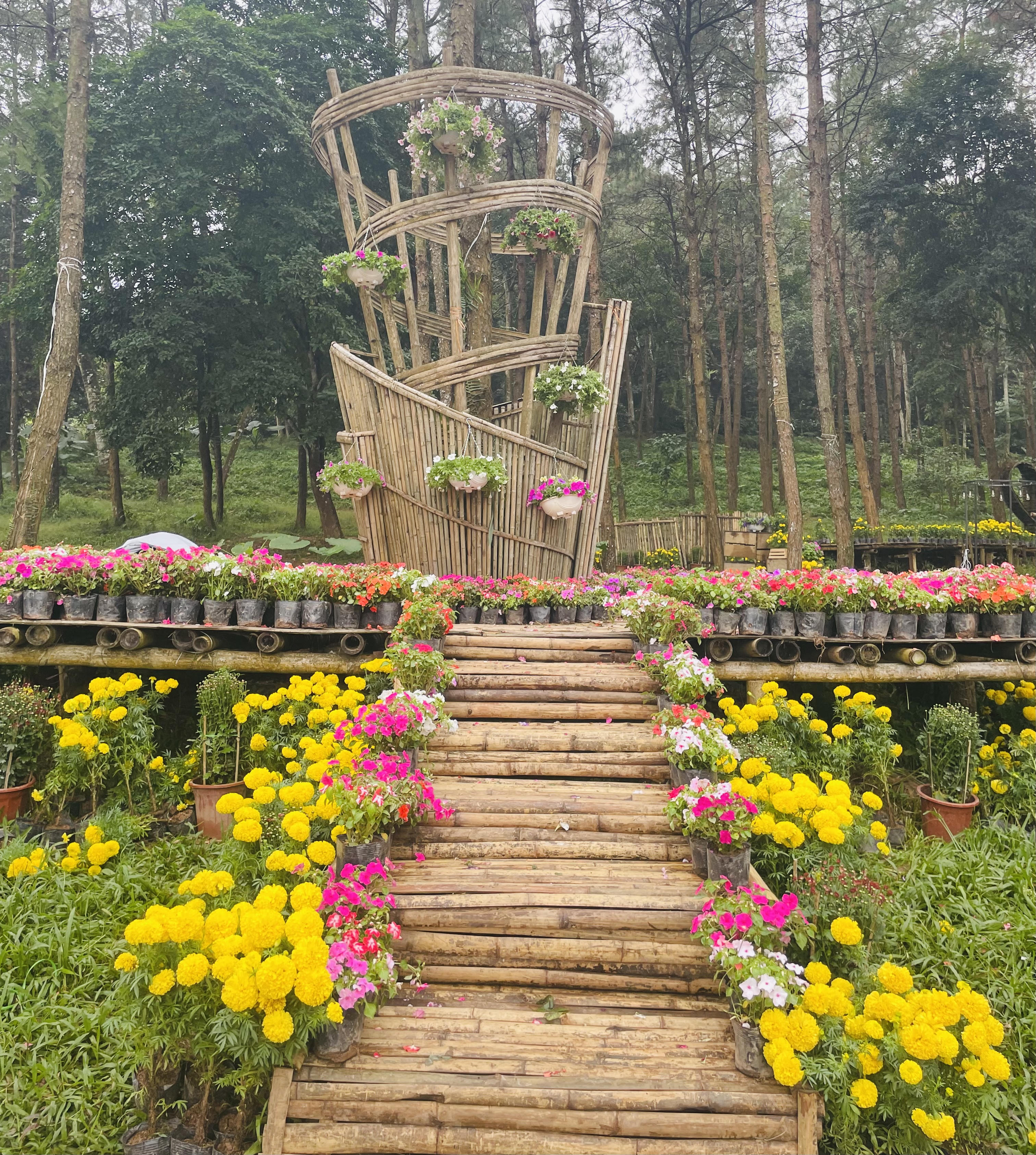 Theo ban tổ chức, vị trí hoa cúc được trưng bày tại khu vực cổng chính với hai thác hoa tượng trưng cho hai thác ngà: Mặt trời và mây trắng: nắng Sơn tây, mây Ba Vì. Khu 1 Hạ Sơn được trang trí 4 vị trí hoa gồm cây hoa, tượng Thánh Tản, sảnh Nhà điều hành, ngã ba vào suối Tam cấp. Khu 2: Hoa được cắm và đặt trên khung tre. Khu 3: khu chính (khu ngã 3 bàn tay chữa lành, đảo, sân khấu nổi, cầu tre và rừng thông.