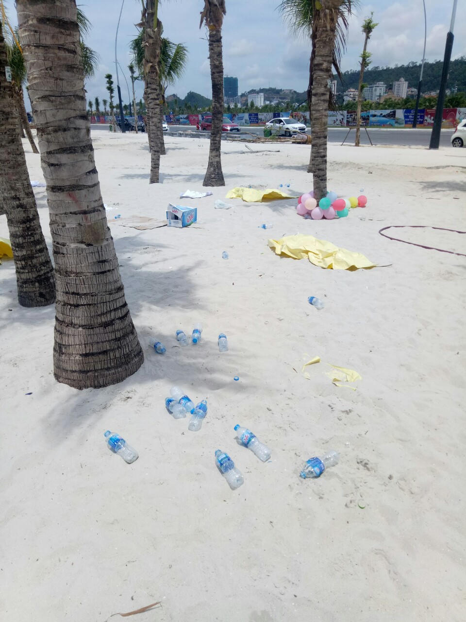 Rác được rải từ ngoài đường vào tới bãi biển. Đặc biệt vào mùa cao điểm, mỗi ngày bãi biển Bãi Cháy đón tiếp hàng chục nghìn người. Nhiều công ty thuê bãi biển làm điểm tổ chức hoạt động team – building hoặc thuê dịch vụ nướng bbq trên cát. Đôi khi tâm lý “mua mâm phải đâm cho thủng”, một khi đã trả chi phí thuê mặt bằng, phí vệ sinh thì thùng rác nằm bên cạnh… chỉ để trang trí.
