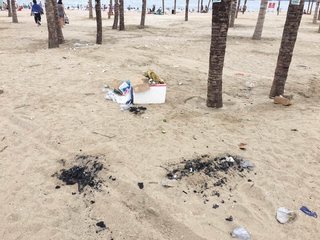 Than từ các bếp nướng bbq (được cung cấp từ ban quản lý bãi tắm) sau khi tàn tiệc được vùi dưới cát thay vì để gọn gàng trong khay thép trả lại cho đơn vị cung cấp. Điều này không chỉ gây mất vệ sinh mà còn ẩn chứa nhiều nguy hiểm tới khách du lịch. Đặc biệt với những du khách có thói quen đi chân trần trên cát.