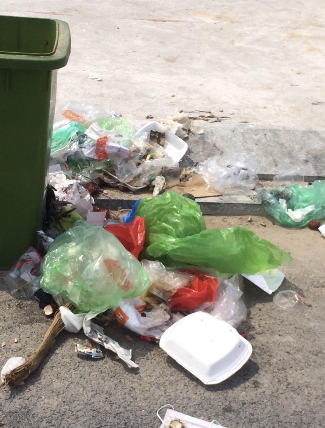 Thùng rác không được làm “tròn nhiệm vụ” và vẫn trống rỗng, trong khi nhiều khách vô tư vứt toàn bộ hộp nhựa, túi ni lông, lon bia, vỏ bánh kẹo ngay tại… chân thùng rác.