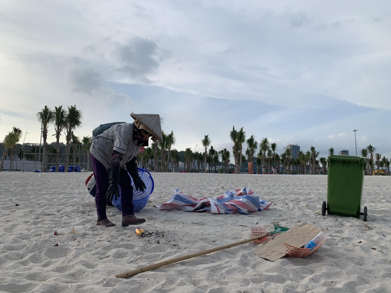 Lực lượng dọn vệ sinh vốn đã không nhiều, lại phải chật vật bươn bả làm việc từ 6h sáng tới 8h tối liên tục để đảm bảo giữ gìn “thiên đường” du lịch Bãi Cháy. Những câu chuyện về ý thức của khách du lịch dường như trở thành đề tài bất tận của những người làm nghề dịch vụ. Thậm chí không ít lần nhắc nhở du khách vứt rác đúng chỗ, nhân viên vệ sinh tại Bãi Cháy còn nhận được câu trả lời xanh rờn: “Nếu bỏ rác vào thùng rồi thì ai còn việc mà làm nữa”; hoặc “nhặt rác là việc của các vị mà”.