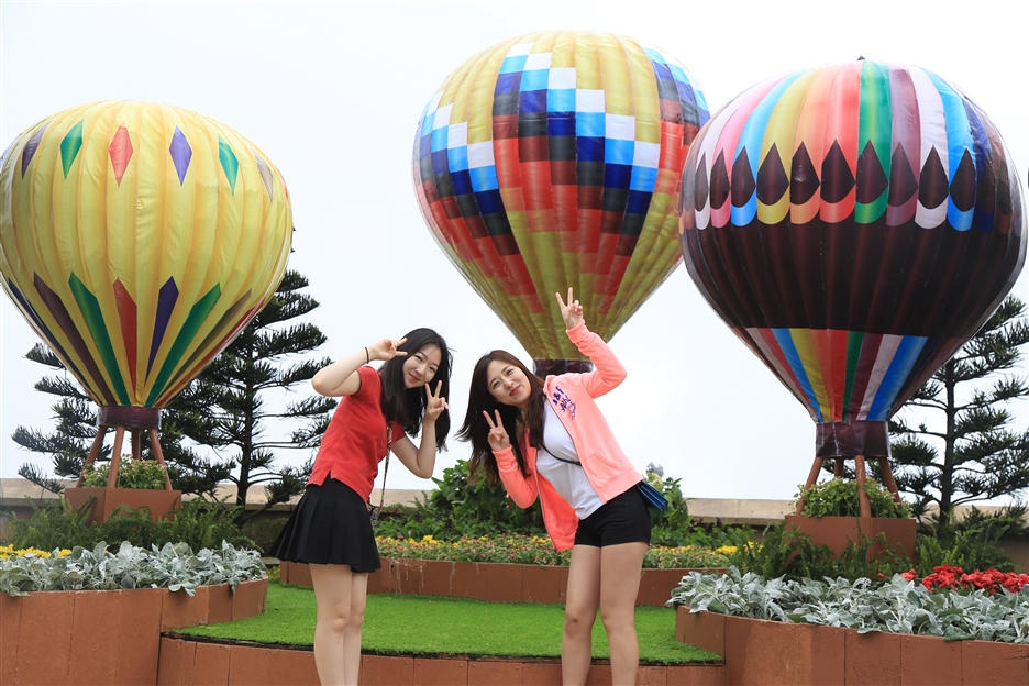 Rất nhiều gia đình và nhóm bạn trẻ thích thú tạo dáng check-in bên những quả khinh khí cầu bắt mắt tại Khu vườn Hạnh phúc.