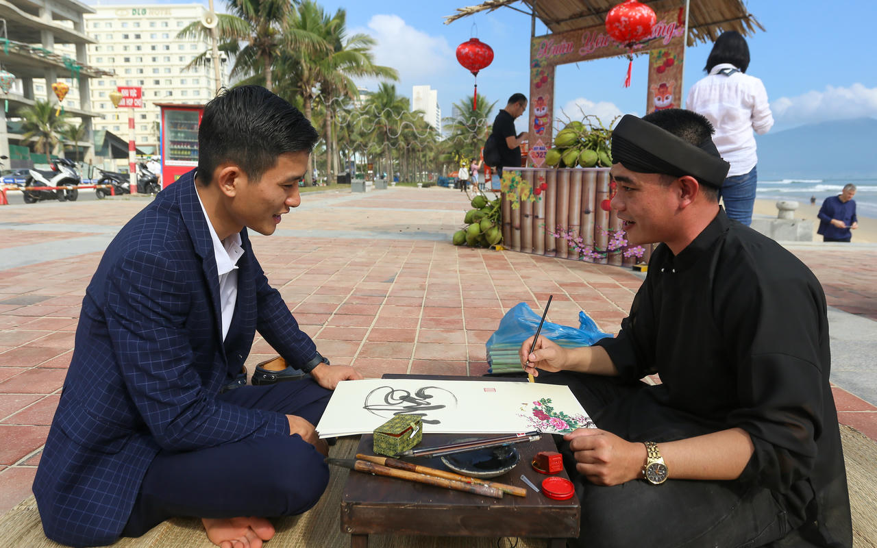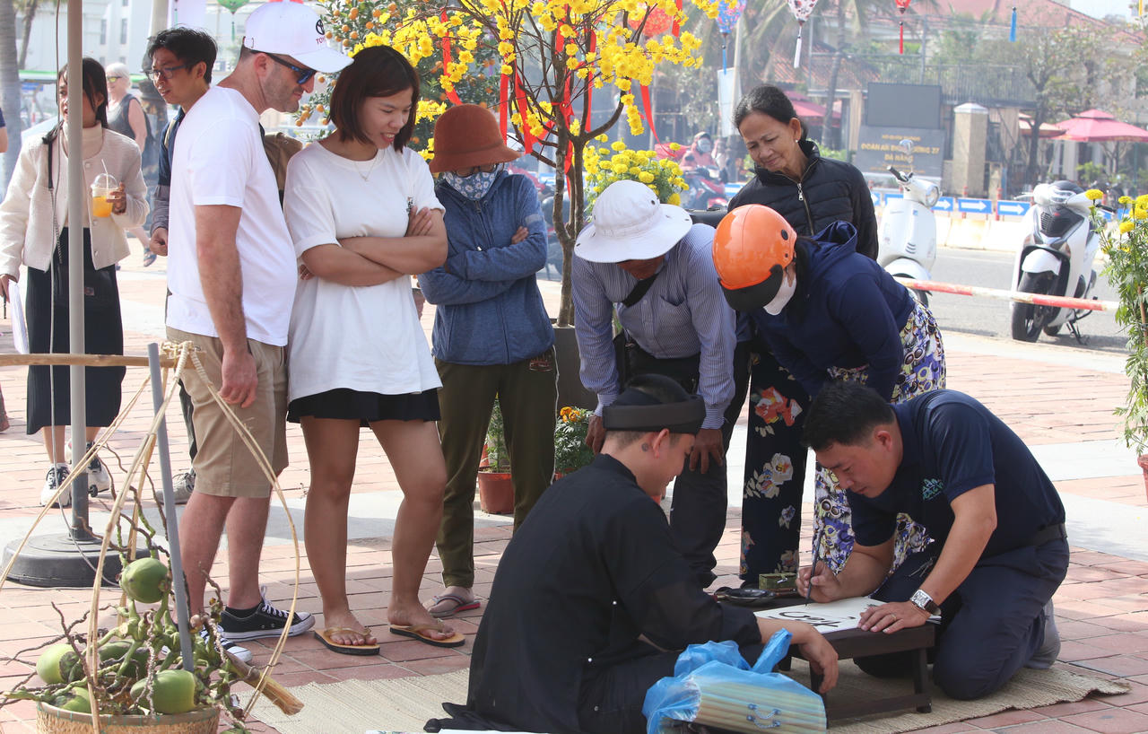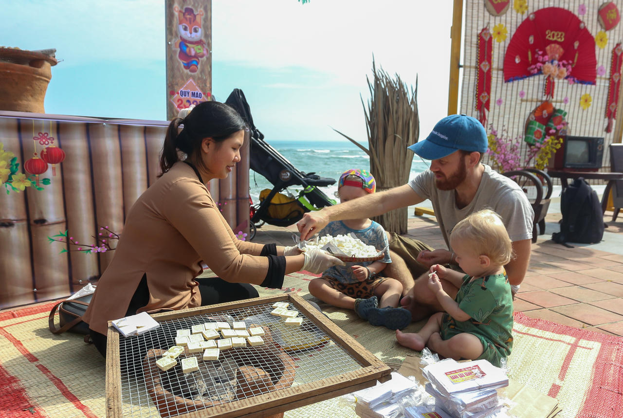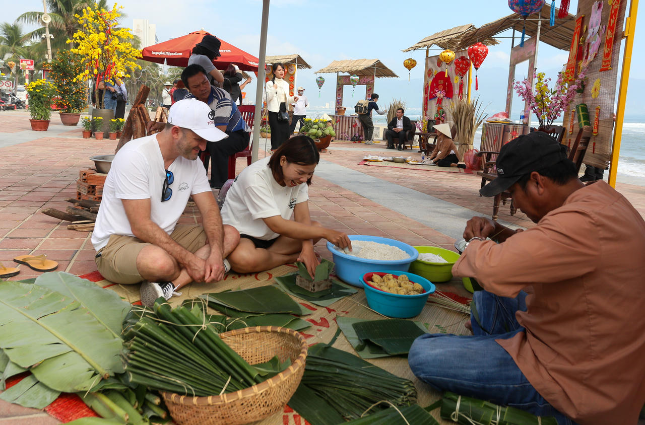 Du khách nước ngoài hào hứng trải nghiệm Tết Việt bên bờ biển Đà Nẵng