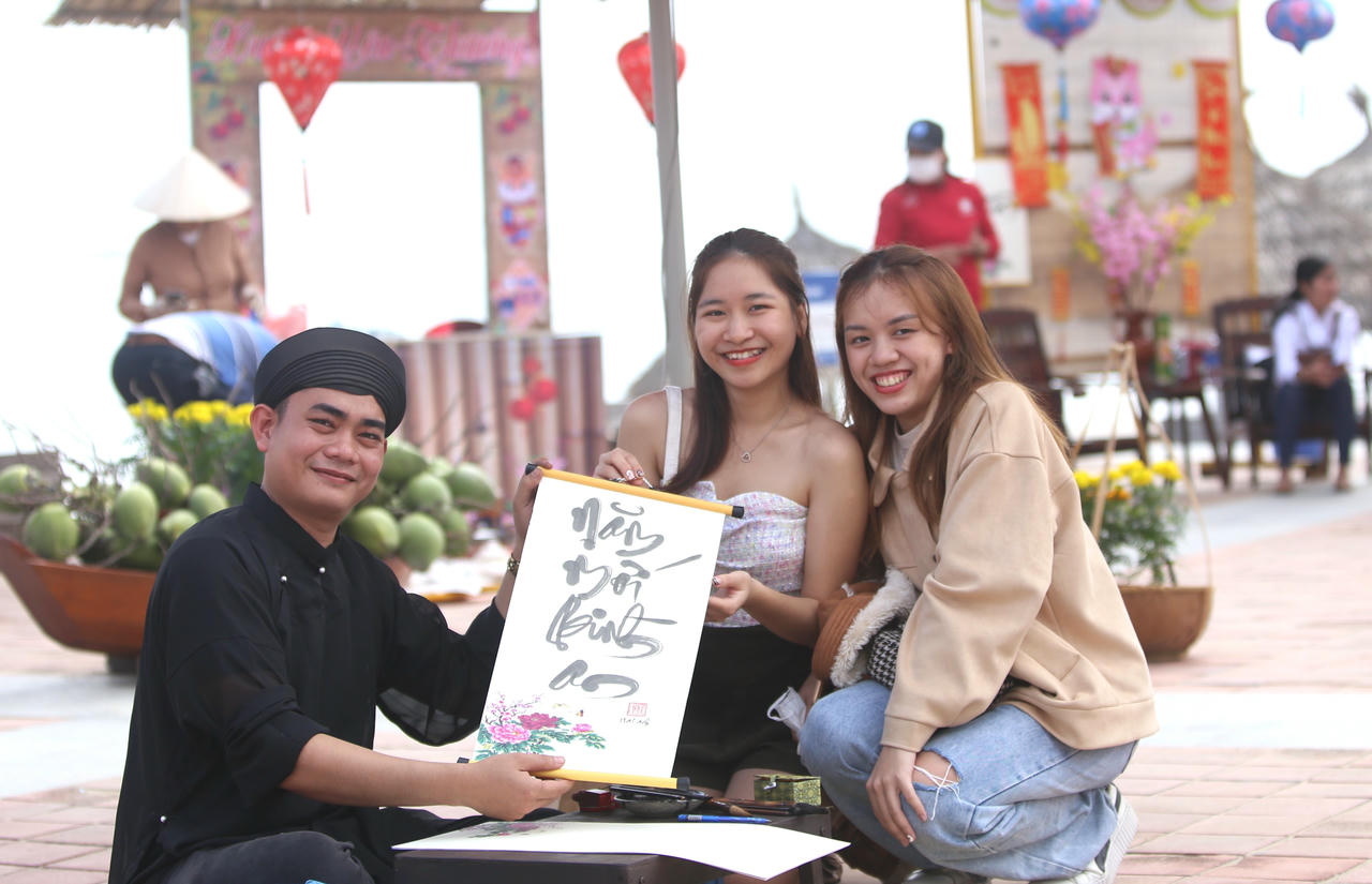 Đến với chương trình, du khách sẽ thỏa thích checkin với các mô hình trang trí Tết, hình ảnh nồi bánh chưng, bánh tét, các mô hình hoa đào, hoa mai, ông đồ vẽ thư pháp.