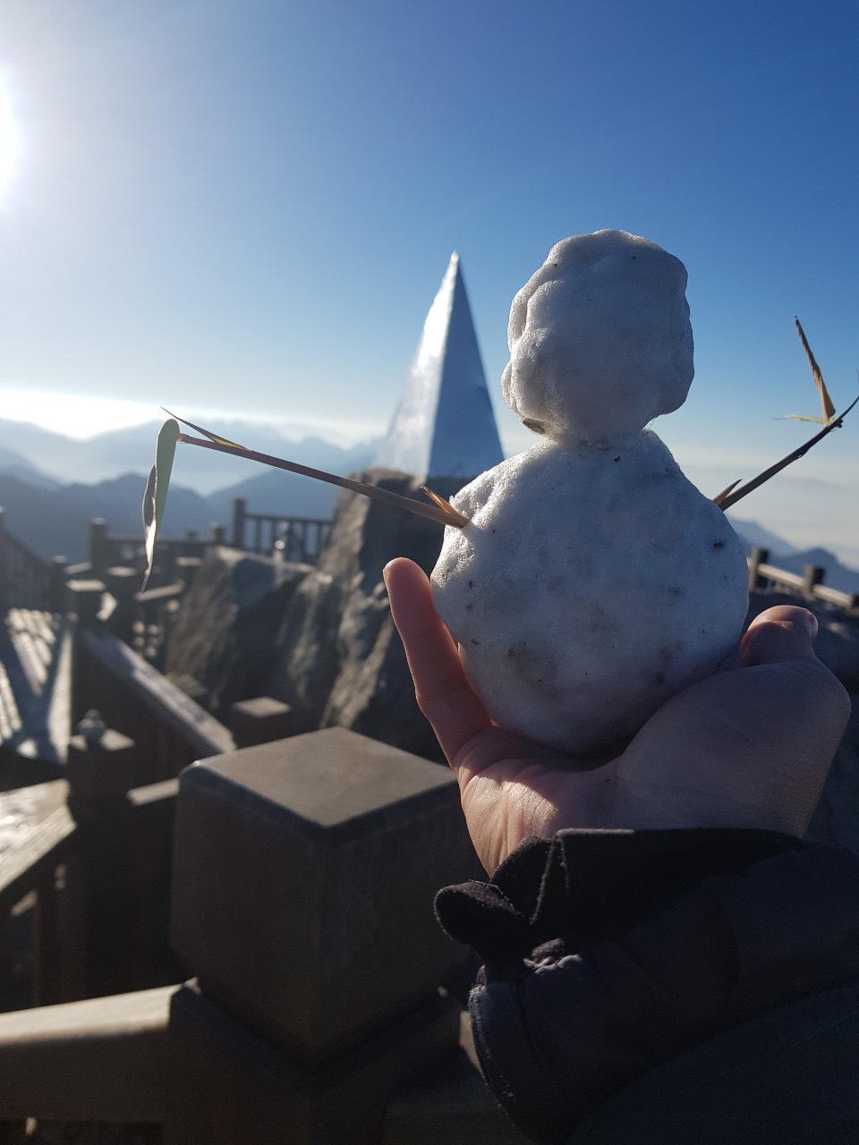Du khách thích thú gom băng tuyết, nặn hình thú trên đỉnh Fansipan