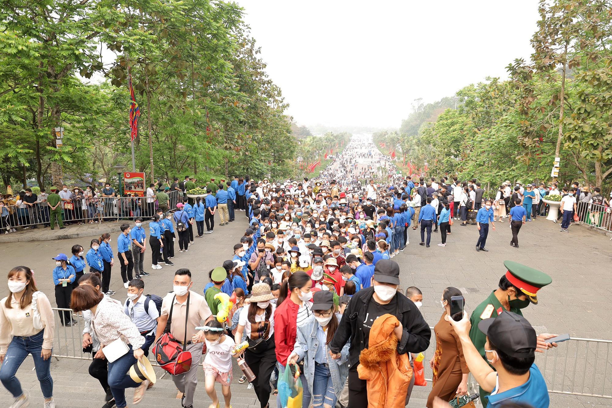 Theo ghi nhận của phóng viên, sau khi đoàn lãnh đạo Đảng, Nhà nước hoàn thành lễ dâng hương, hàng vạn người đã đổ về khu vực sân trung tâm, chen lấn nhau lên đền. Lực lượng chức năng cho thiết lập hàng rào cứng và đứng thành hàng để hướng dẫn người dân lên đền, hạn chế tình trạng chen lấn.