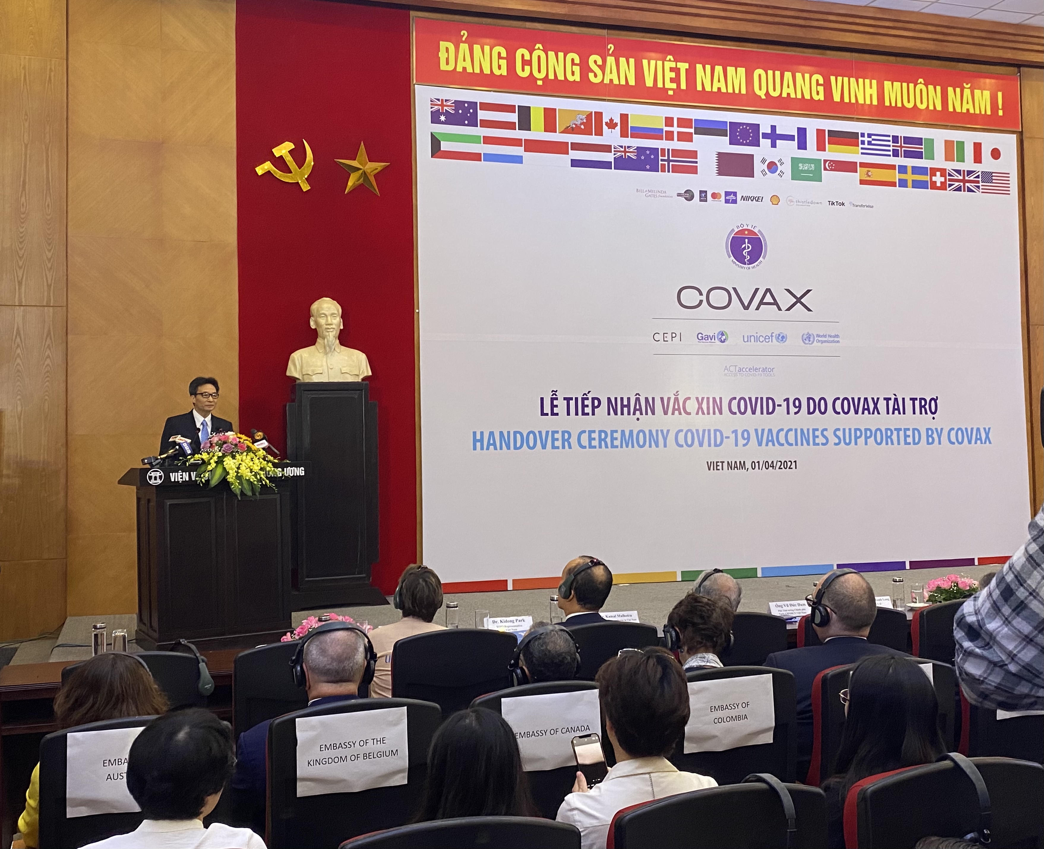 Phát biểu tại buổi lễ tiếp nhận vắc xin ngừa COVID-19, Phó Thủ tướng Chính Phủ Vũ Đức Đam cho biết: “Trước hết tôi thay mặt Chính phủ và nhân dân Việt Nam chân thành cảm ơn sự giúp đỡ của cộng đồng quốc tế, các tổ chức quốc tế… đã hỗ trợ nhân dân Việt Nam cùng đấu tranh chống lại đại dịch COVID-19. Ngày hôm nay, chúng ta tiếp cận được nguồn vắc xin của COVAX, tôi hân hạnh cảm ơn tất cả sự giúp đỡ của các bạn”.