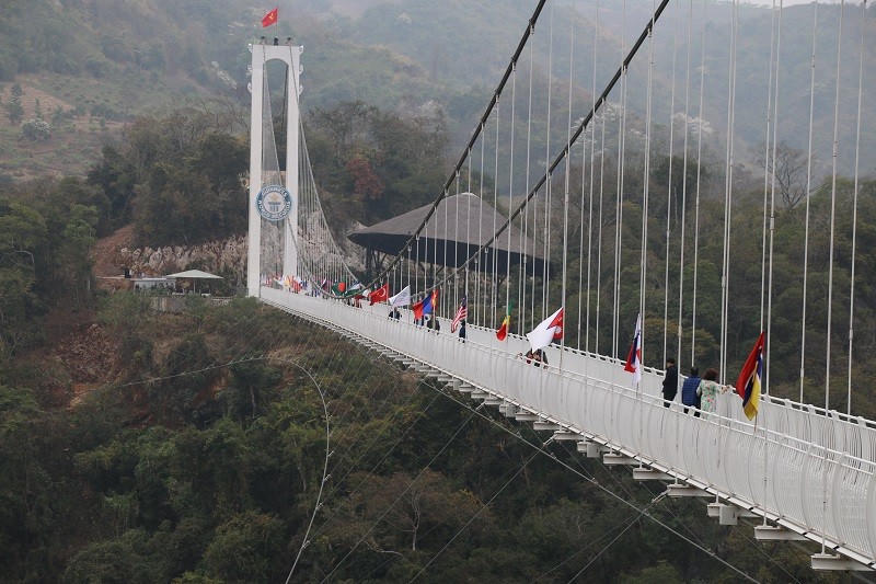 Đông đảo du khách tham quan Cầu kính Bạch Long - Khu du lịch Mộc Châu Island. |