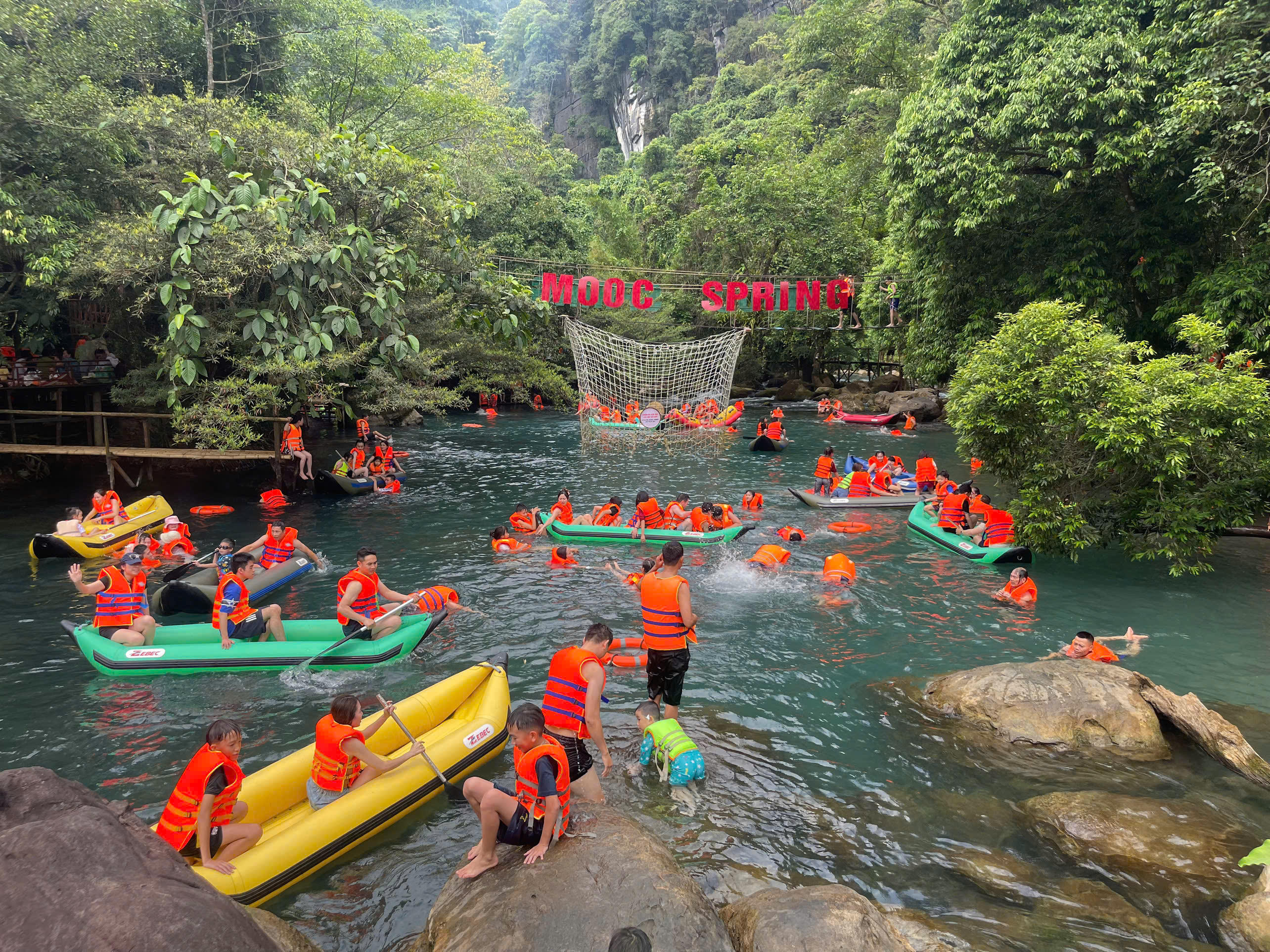 Suối Nước Moọc (thuộc Trung tâm Du lịch Phong Nha-Kẻ Bàng) hút khách trong dịp hè. |