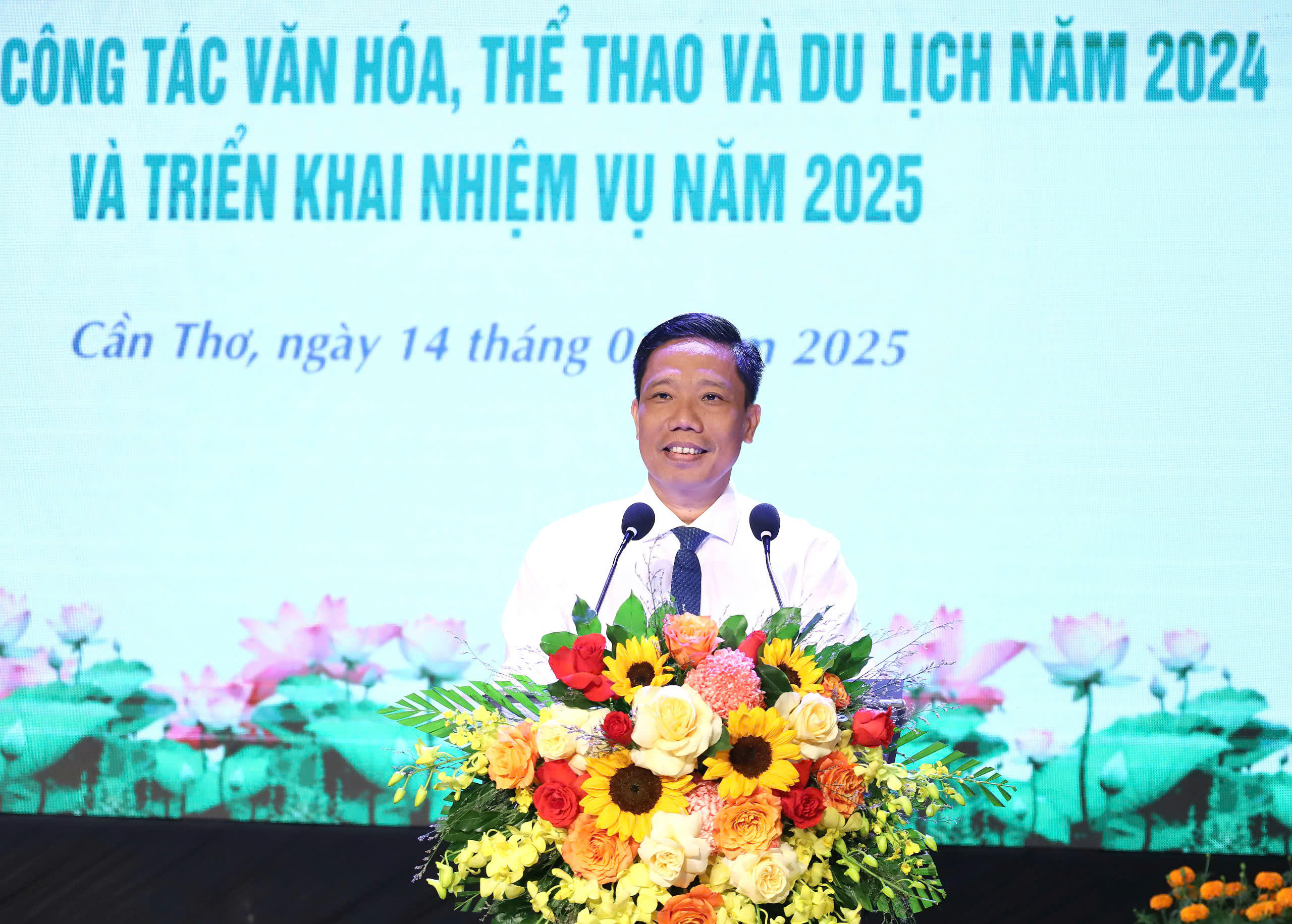 Ông Nguyễn Thực Hiện – Phó Chủ tịch UBND TP Cần Thơ ghi nhận và biểu dương tinh thần đoàn kết, sự phấn đấu nỗ lực quyết tâm của toàn Ngành VH-TT&DL trong việc hoàn thành tốt những mục tiêu nhiệm vụ đã đề ra, qua đó đạt được những thành tích đáng khích lệ trong năm 2024.