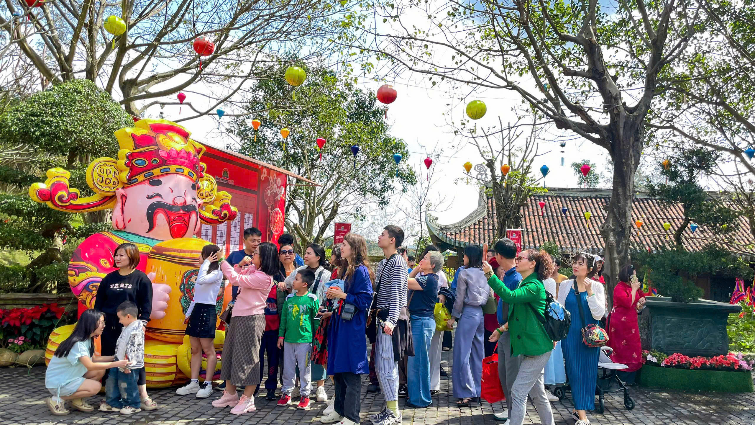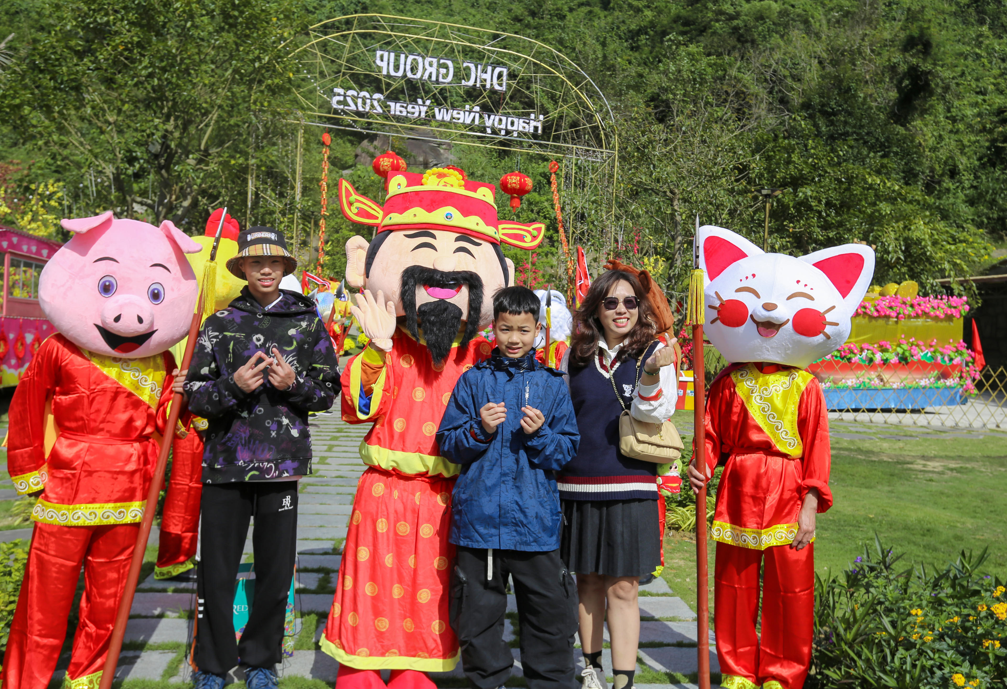 Du khách check in tại Lễ hội Thần Tài ở công viên suối khoáng nóng Núi Thần Tài. |