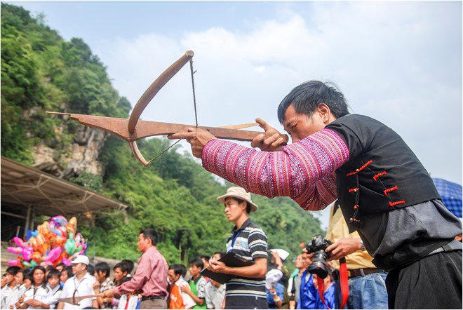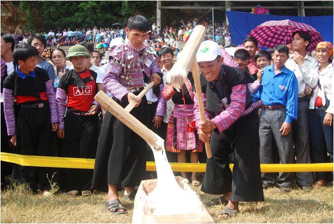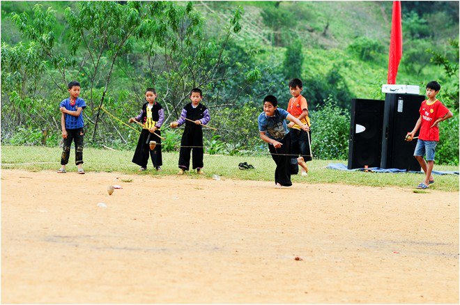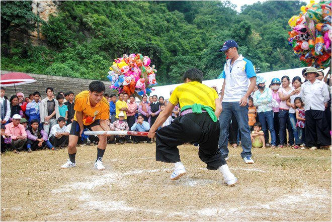 Tết Độc lập cũng là dịp để cánh thanh niên trai tráng người H’mông thi tài đọ sức thông qua những cuộc thi mang tính thể hiện sức mạnh, sự khéo léo, chính xác… như trò thi đẩy gậy