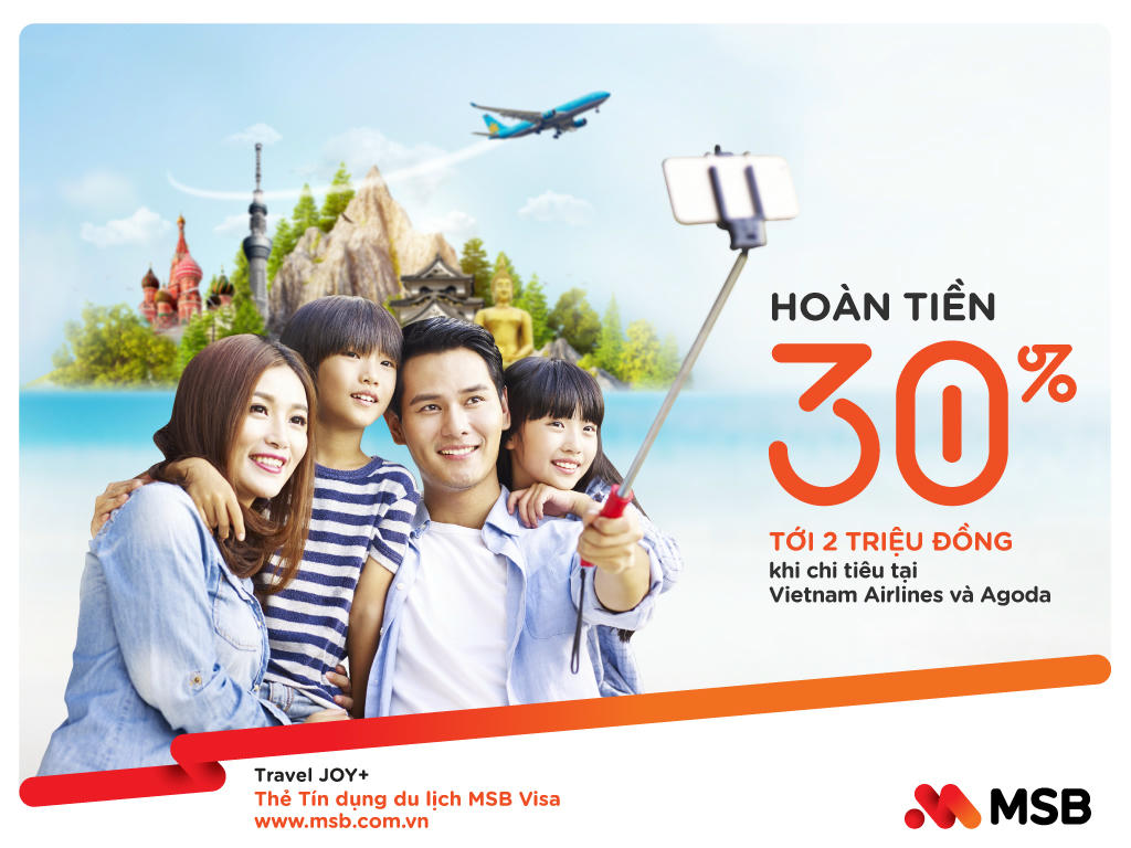 Nhằm tối đa lợi ích cũng mang đến những trải nghiệm du lịch tốt nhất cho khách hàng, MSB triển khai riêng một chương trình ưu đãi có tên Travel JOY+ với mức hoàn tiền “khủng” 30% lên tới hàng triệu đồng mỗi lần. Cụ thể: