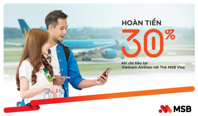 Theo đó, từ ngày 15/03 – 17/03/2019, du khách sẽ được hoàn tiền 30% trên tổng giá trị hóa đơn, lên tới 1.000.000 đồng khi mua vé máy bay trên ứng dụng di động hoặc website của Vietnam Airlines bằng thẻ tín dụng du lịch MSB Visa. Chương trình được áp dụng cho tất cả các chuyến bay nội địa và quốc tế.