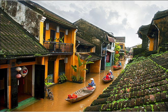 Những ngày qua, trên mạng xã hội lan truyền hình ảnh nhiều điểm đến nổi tiếng, trong đó có phố cổ Hội An (tỉnh Quảng Nam), bị ngập trong nước do ảnh hưởng của mưa lớn kéo dài. Những nơi ngập sâu, người dân ra khỏi nhà phải dùng ghe, thuyền để di chuyển. Đối với người dân nơi đây, mỗi mùa mưa lũ, hình ảnh này đã trở nên quá quen thuộc.