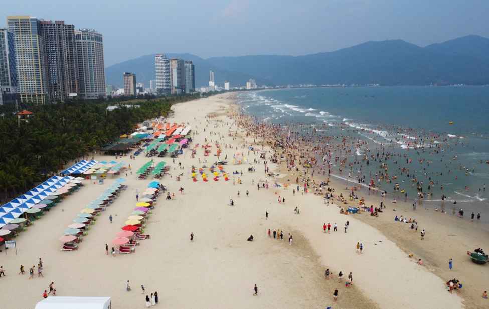 Bãi biển Đà Nẵng đông nghịt du khách dịp lễ 30/4-1/5. |