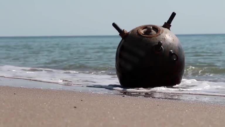 Quả thuỷ lôi lớn trên bờ biển Odessa. Ảnh: Reuters