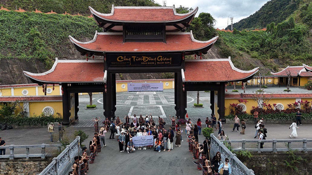 Các chuyên gia du lịch, đơn vị lữ hành trong nước và quốc tế tham gia chương trình khảo sát cung đường di sản Hội An – Mỹ Sơn – Cổng trời Đông Giang. |