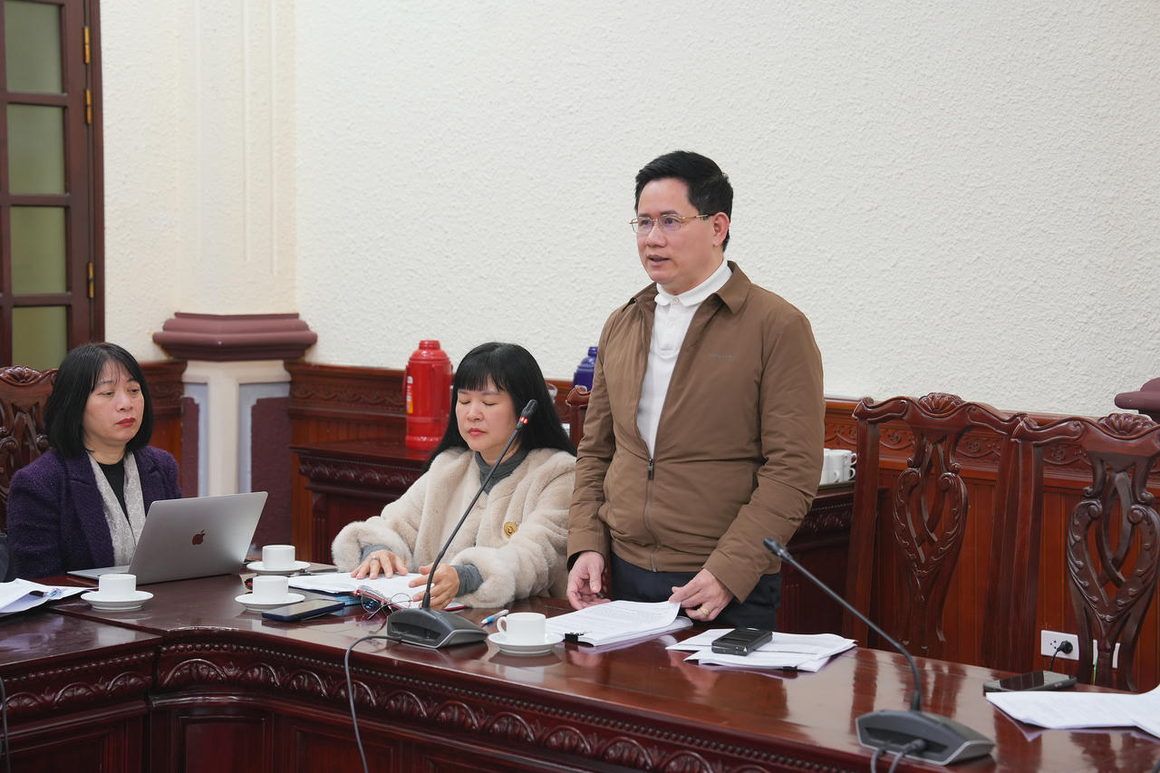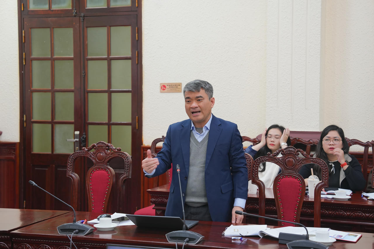 Vụ trưởng Vụ Các vấn đề chung về xây dựng pháp luật Trần Anh Đức phát biểu tại buổi làm việc. |