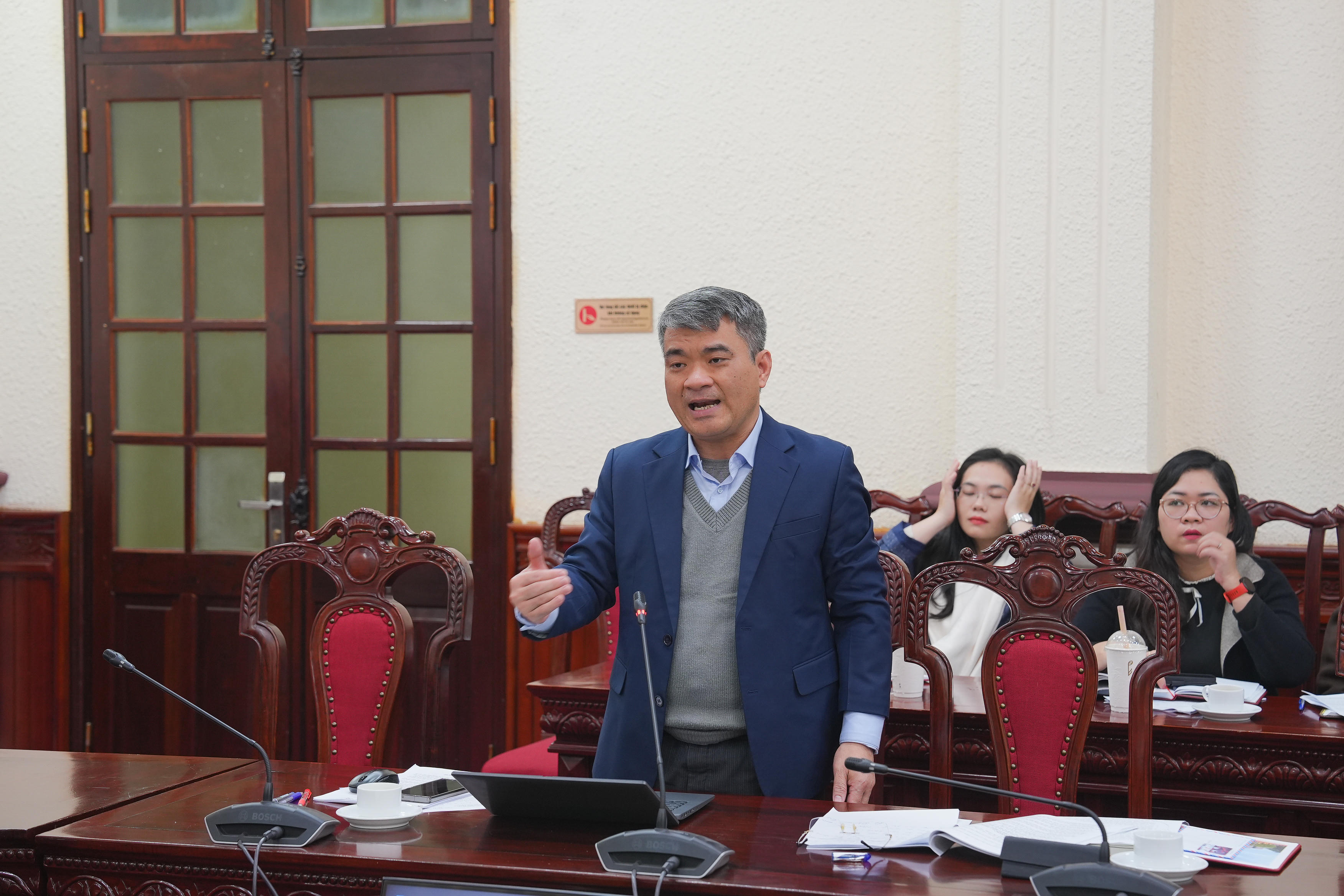 Ông Nguyễn Thanh Tú, Vụ trưởng Vụ Pháp luật dân sự - kinh tế phát biểu tại buổi làm việc. |