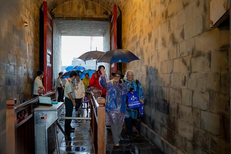 Dù trời mưa nhưng các du khách vẫn hào hứng đến với Cố đô Huế. |