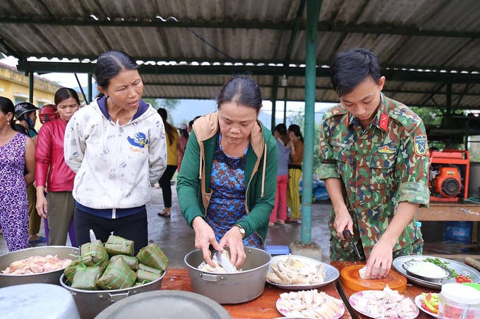 Cách hiện trường 30 km, hai bếp dã chiến của bộ đội được dựng tại trường Tiểu học Phong Xuân, phục vụ 100 suất ăn buổi trưa. Hàng trăm người dân, giáo viên ở xã Phong Xuân và các xã lân cận mang theo rau, gà, trứng, gạo, dầu ăn... đến tiếp tế. Người dân phụ giúp nấu ăn, chuẩn bị các suất ăn để chuyển vào hiện trường cứu nạn thủy điện Rào Trăng 3.