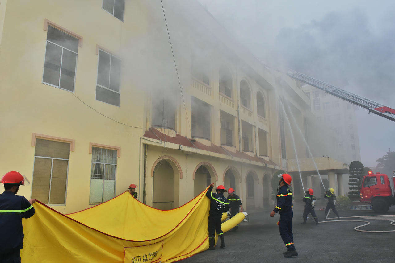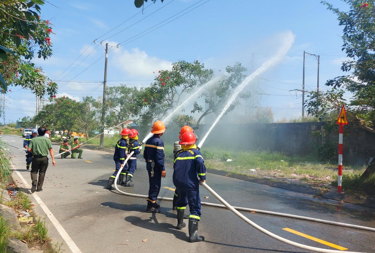 Theo đó, tình huống diễn tập được giả định, vào 10 giờ trưa ngày 10/11/2022, phát hiện có sự cố cháy tại Công ty Tràng An - Chi nhánh Bạc Liêu (khóm 1, Phường 7, TP. Bạc Liêu). Ngọn lửa bùng cháy dữ dội, nhanh chóng lan rộng ra toàn bộ Công ty và cháy lan sang 2 căn nhà liền kề. Nguyên nhân vụ cháy là do một nhóm thợ sửa chữa đang trong quá trình hàn cắt thì vô tình làm vẩy hàn rơi vào giấy tờ bốc cháy.