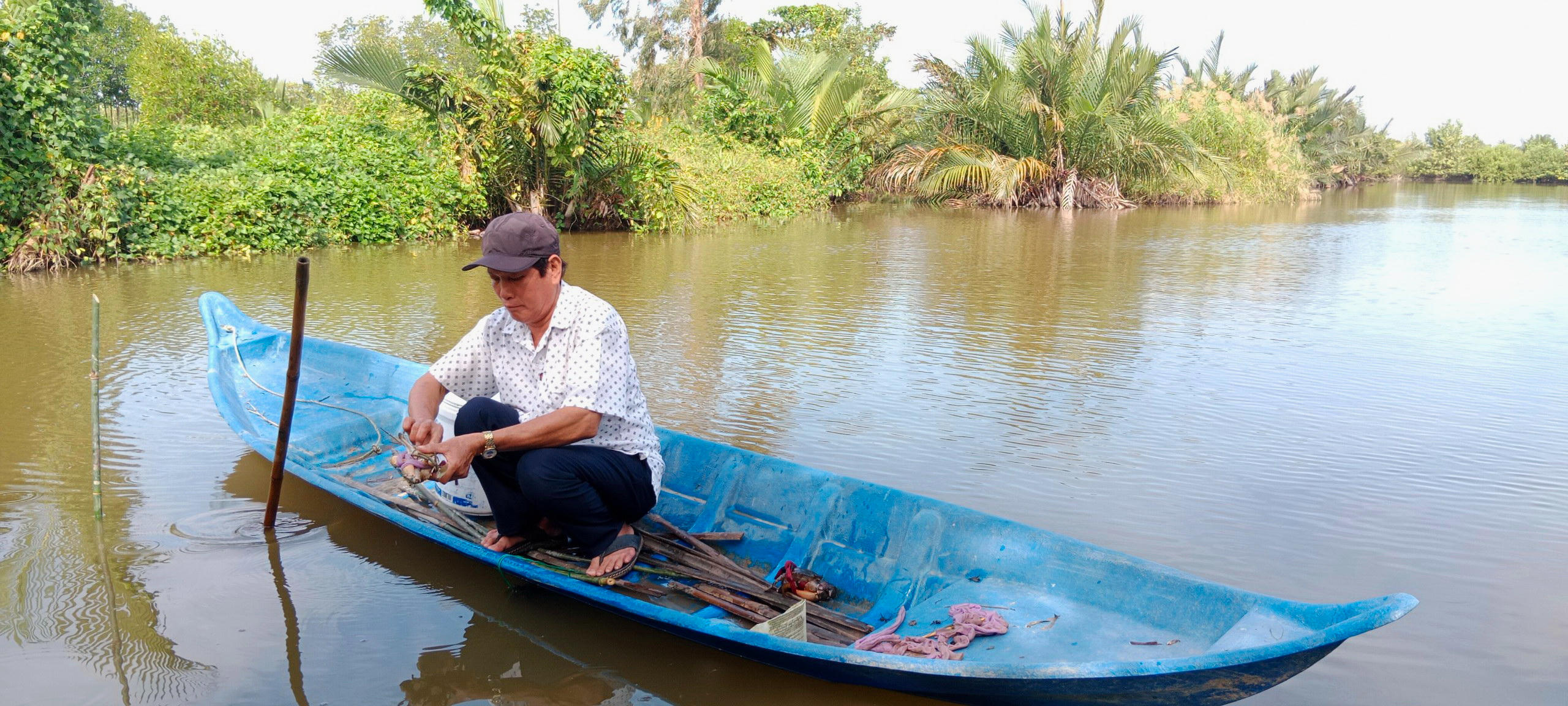 “Để tiết kiệm chi phí nuôi và cho năng suất cao thì ông làm ao nhỏ để vèo cua giống cho nó thích nghi với nguồn nước và điều kiện tự nhiên. Khi vèo cua, ông không chạy oxy và mua thêm con ruốc giá rẻ làm thức ăn cho cua giống, sau khi vèo từ 12 - 15 ngày cho cua lớn khỏe mới thả xuống vuông hoặc bán cho người dân nuôi. Bằng cách làm này, anh Đoàn bán ra thị trường với giá 500 đồng/con, từ tháng 6/2022 đến nay, anh bán hơn 200 ngàn con giống, thu nhập gần 20 triệu từ từ 6 ao vèo của mình”, anh Đoàn cho biết.