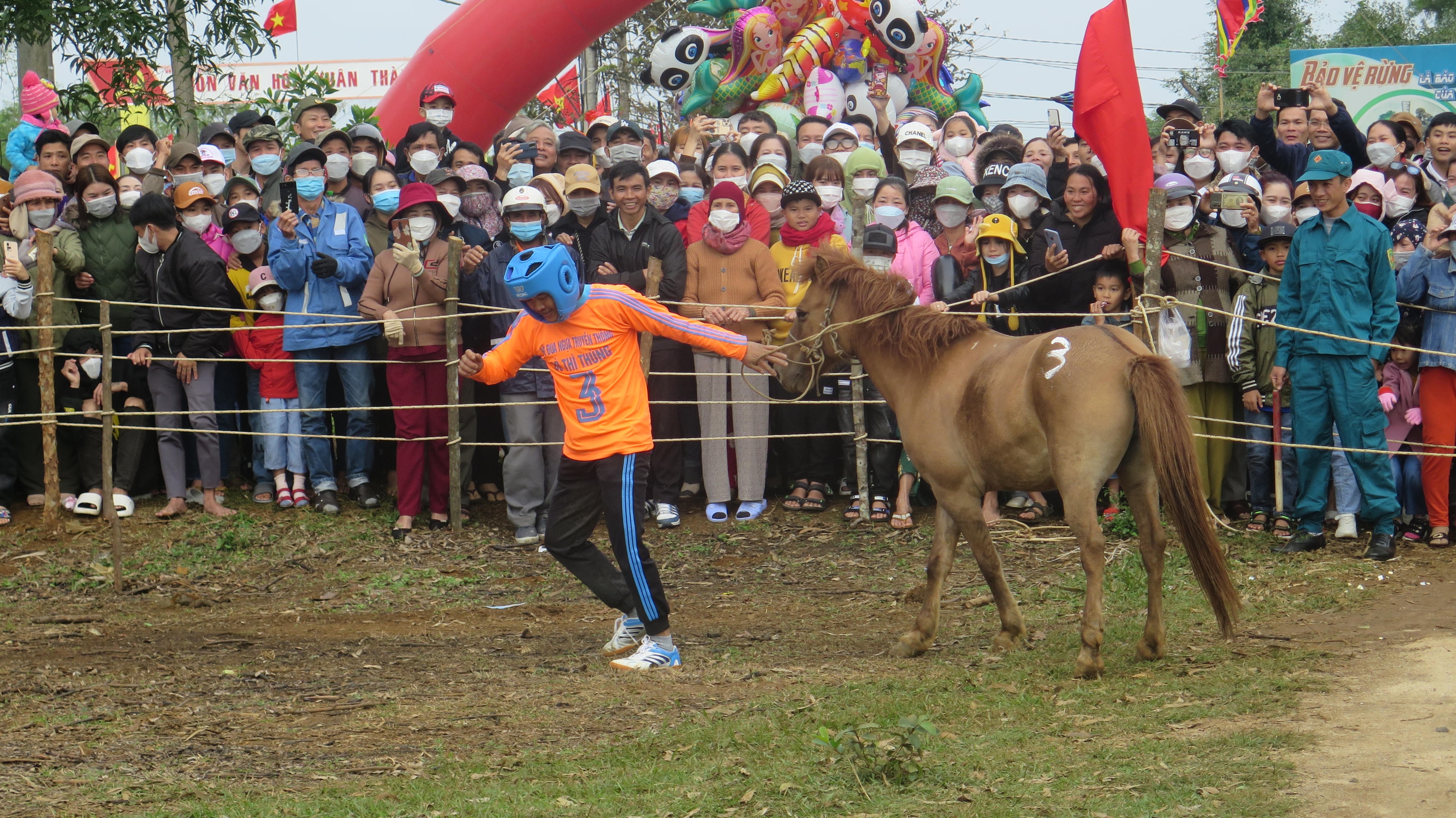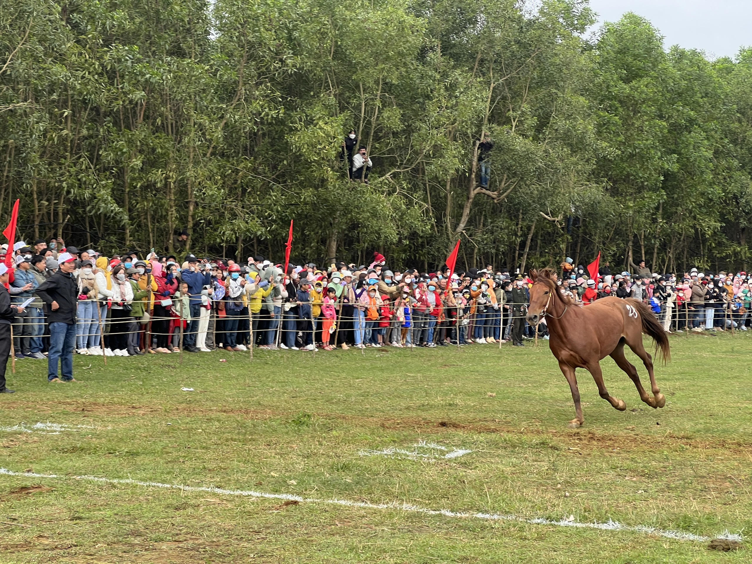 Sáng 30/1 (mùng 9 Tết), hàng ngàn người dân không ngại cơn mưa lất phất và thời tiết lạnh 17 độ C để đến Gò Thì Thùng ở xã vùng cao An Xuân (huyện Tuy An, tỉnh Phú Yên) xem hội đua ngựa